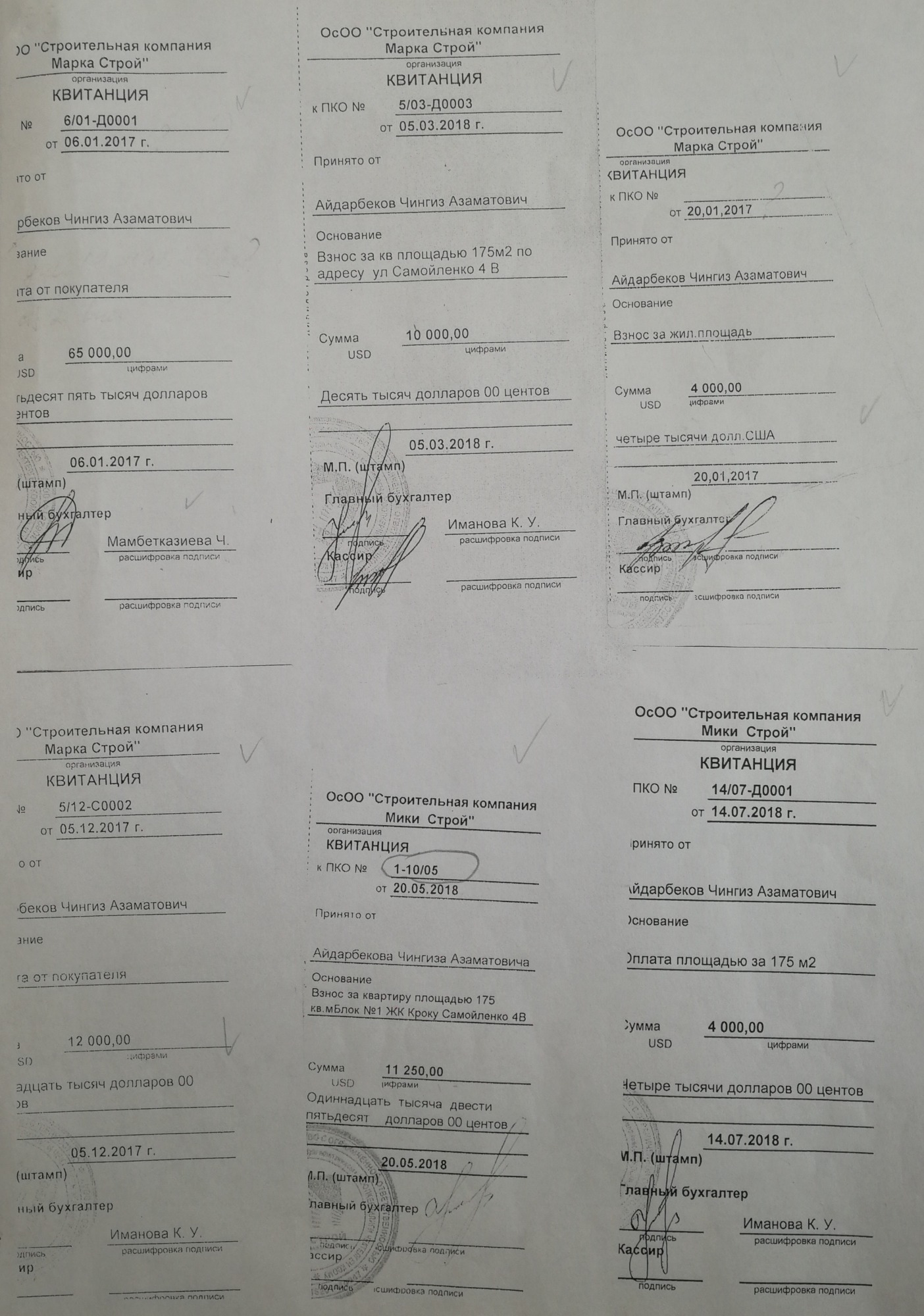 Уточняется, что Чингиз Айдарбеков 13 мая 2016 года подписал договор долевого участия в строительстве жилого комплекса с ОсОО «Марка строй». Он купил квартиру в элитном доме в районе ВДНХ общей площадью 167 квадратных метров. 18 июля 2018-го Чингиз Айдарбеков подписал договор долевого участия на приобретение нежилого коммерческого помещения на первом этаже указанного жилого дома общей площадью 30 квадратных метров по адресу: улица Самойленко, 4в.