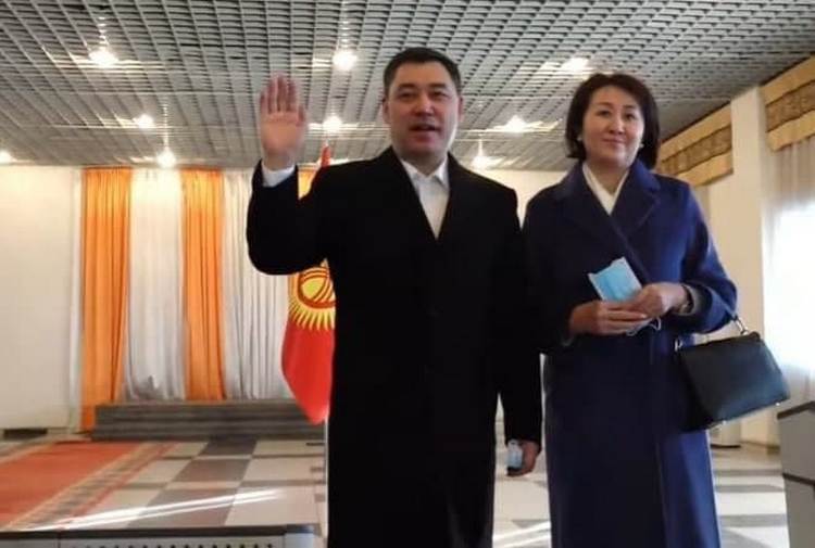 Садыр Жапаров проголосовал на участке № 1053. Он пришел с супругой Айгуль. Отвечая на вопросы журналистов, кандидат в президенты заявил, что признает любой итог голосования.