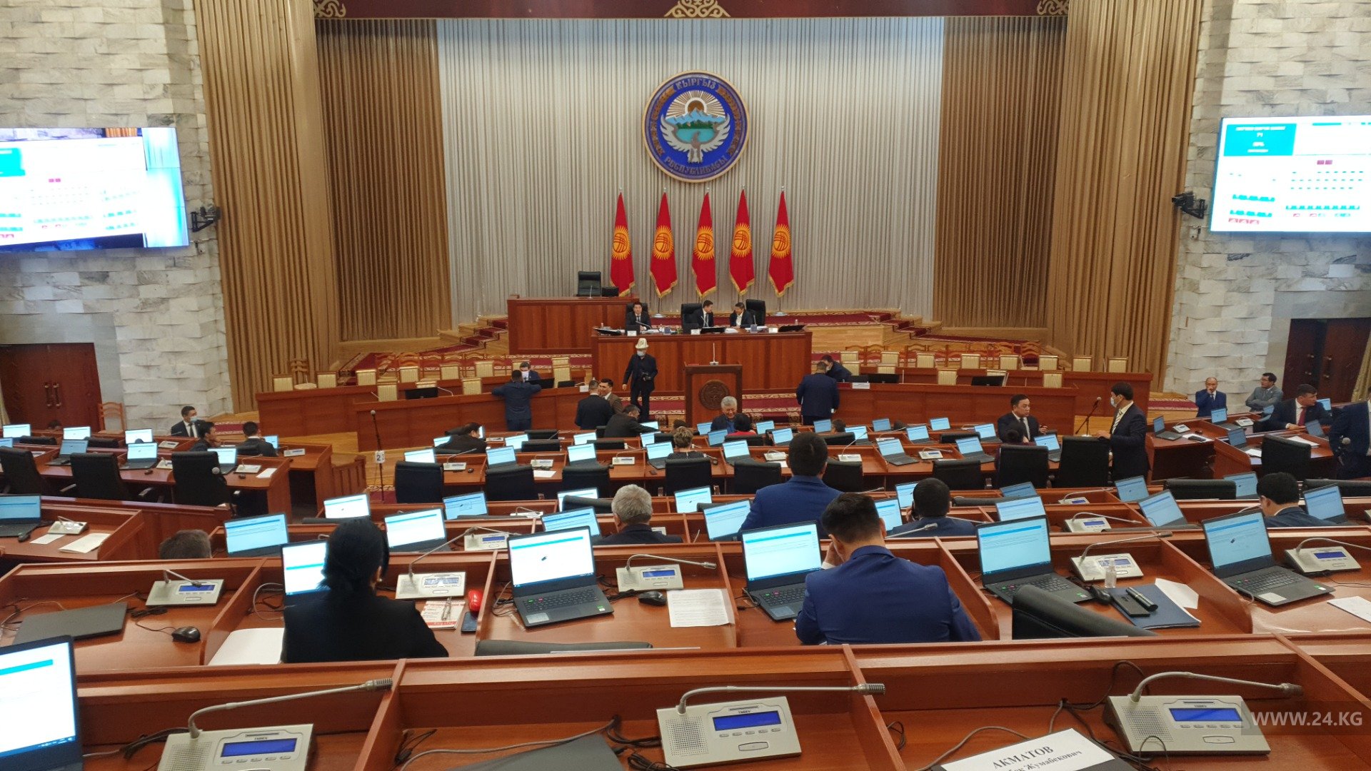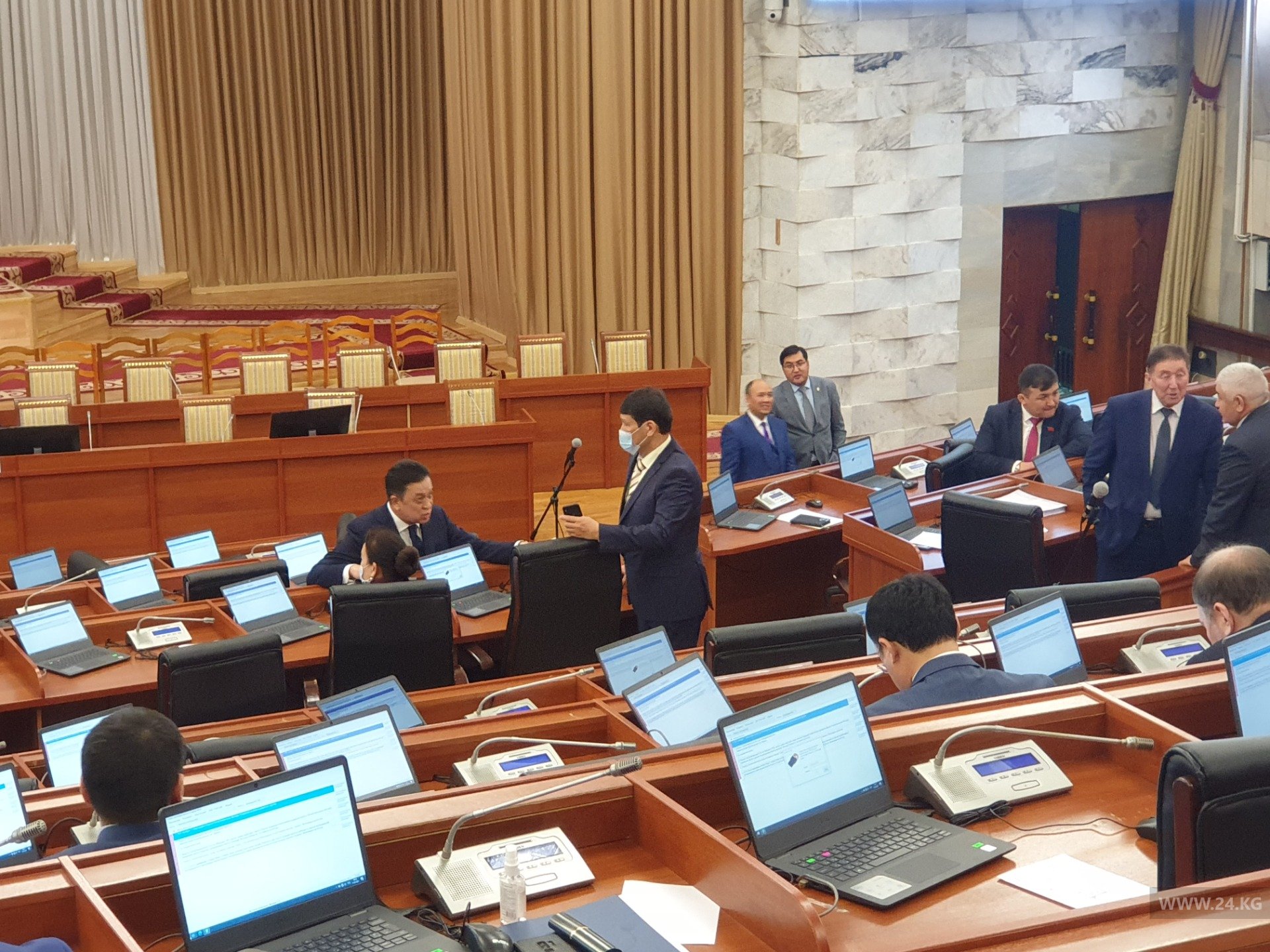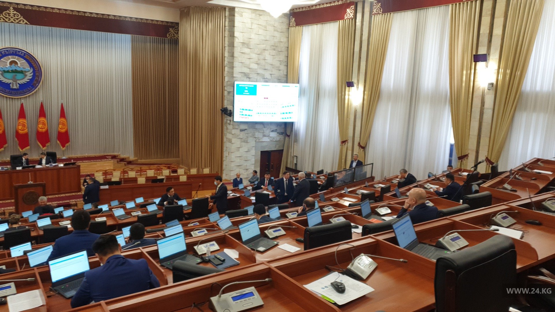 Табло показало, что зарегистрировалось 77 депутатов, однако фактически в зале заседаний Жогорку Кенеша присутствует всего 45 нардепов.