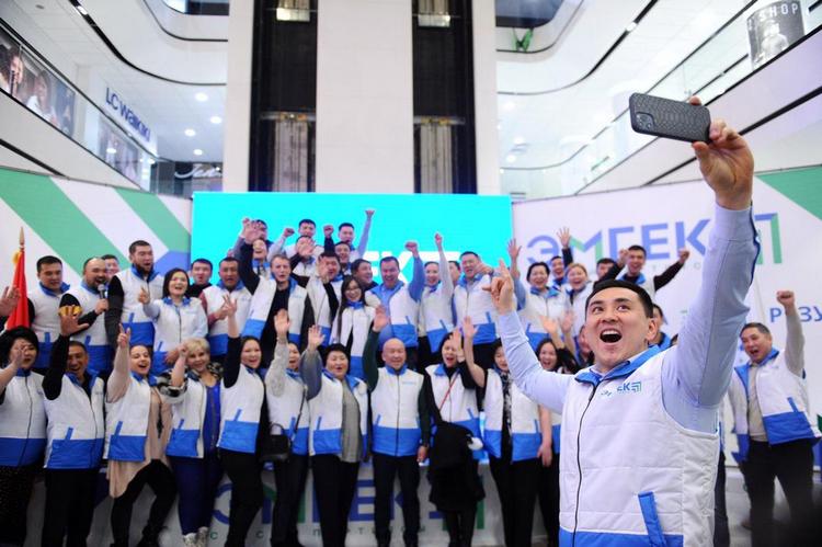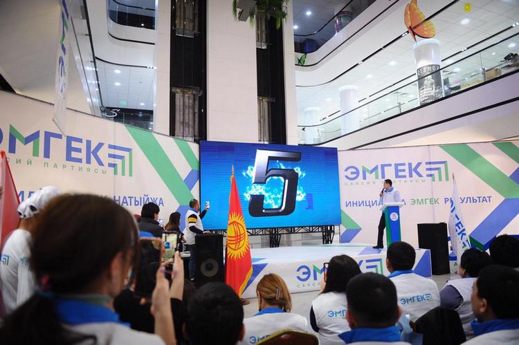 Кампания официально стартовала в 00.00 12 марта. Около 60 кандидатов, их доверенные лица, сотрудники предвыборного штаба, активисты и члены партии «Эмгек» собрались на торжественной церемонии, чтобы дать старт агитации. Все надели футболки и жилеты с символикой политорганизации. За несколько секунд до полуночи на большом экране запустили обратный отсчет. Прозвучал гимн Кыргызстана.