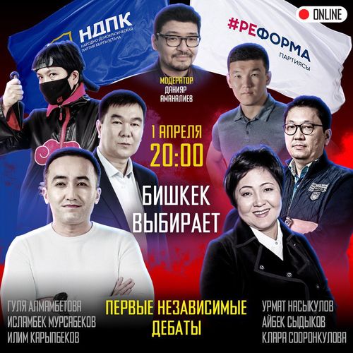 Народно-демократическая партия Кыргызстана (НДПК) и партия «Реформа» решили опробовать новый вид теледебатов и объявили о конкурентной полемике, которая пройдет в онлайн-режиме и будет транслироваться на популярных площадках социальных сетей и YouTube.