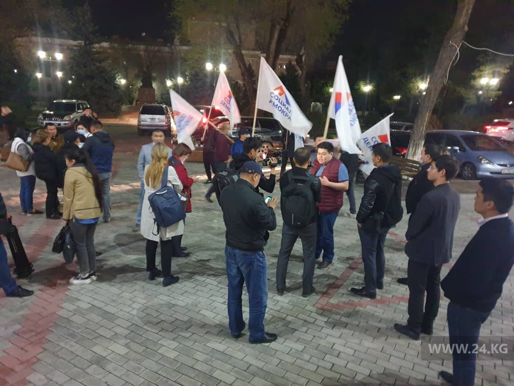 В Бишкеке около здания Центральной комиссии по выборам и проведению референдумов проходит митинг партии «Социал-демократы Кыргызстана».
