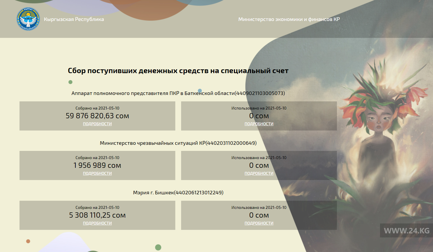 На 10 мая на счет в помощь пострадавшим баткенцам перечислено более 67 миллионов сомов. Такие данные отражает специальный ресурс, созданный Министерством экономики и финансов для отслеживания пожертвований.