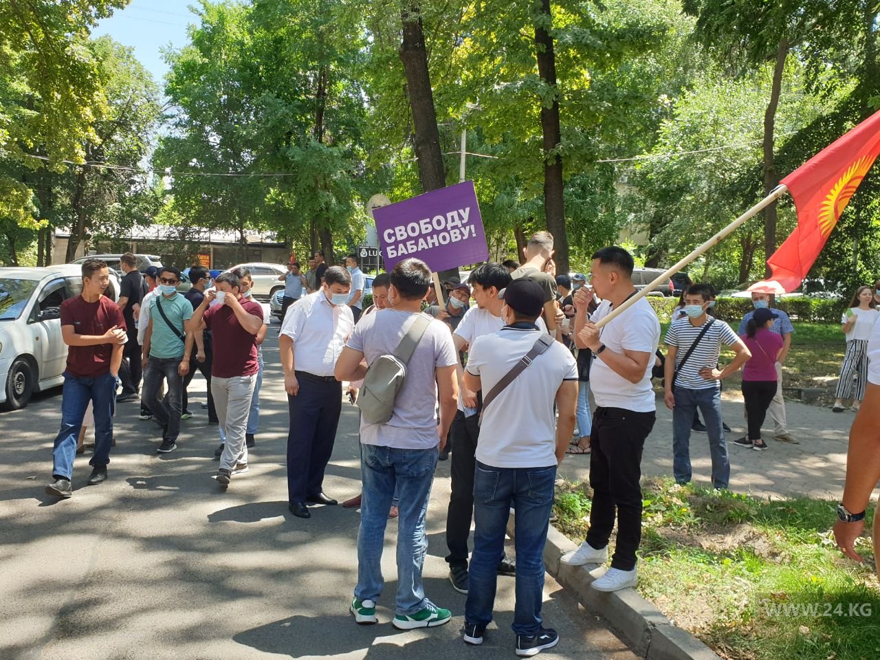 Сторонники бывшего премьера пришли к зданию ГКНБ. Они возмущены решением суда. По их мнению, Омурбека Бабанова должны были отпустить из-под стражи.