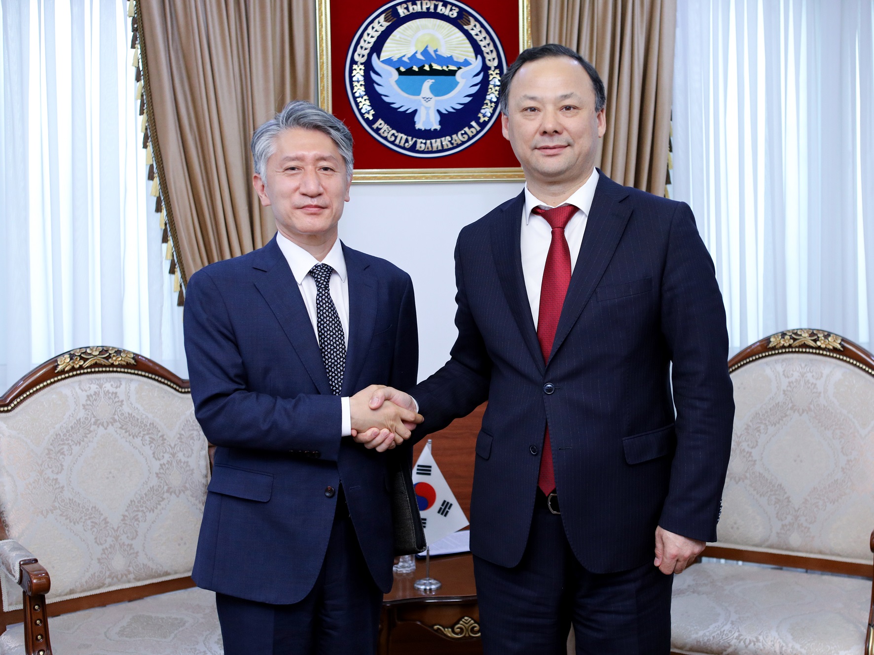 Руслан Казакбаев принял копии верительных грамот от Чрезвычайного и Полномочного Посла Республики Корея в Кыргызской Республике Ли Вон Чжэ.