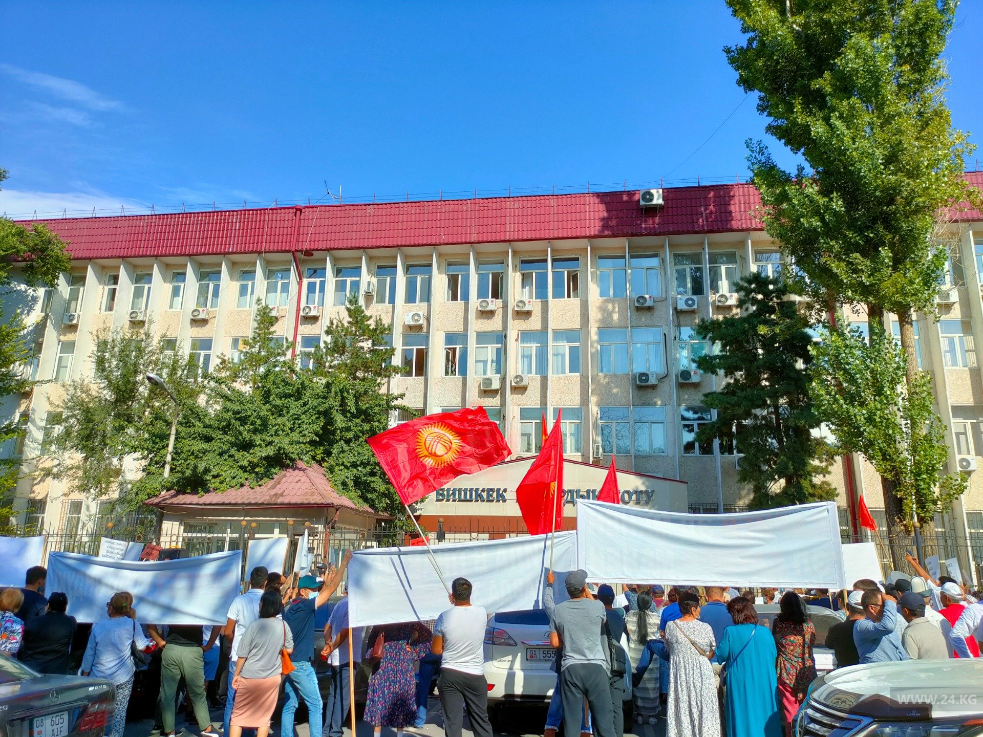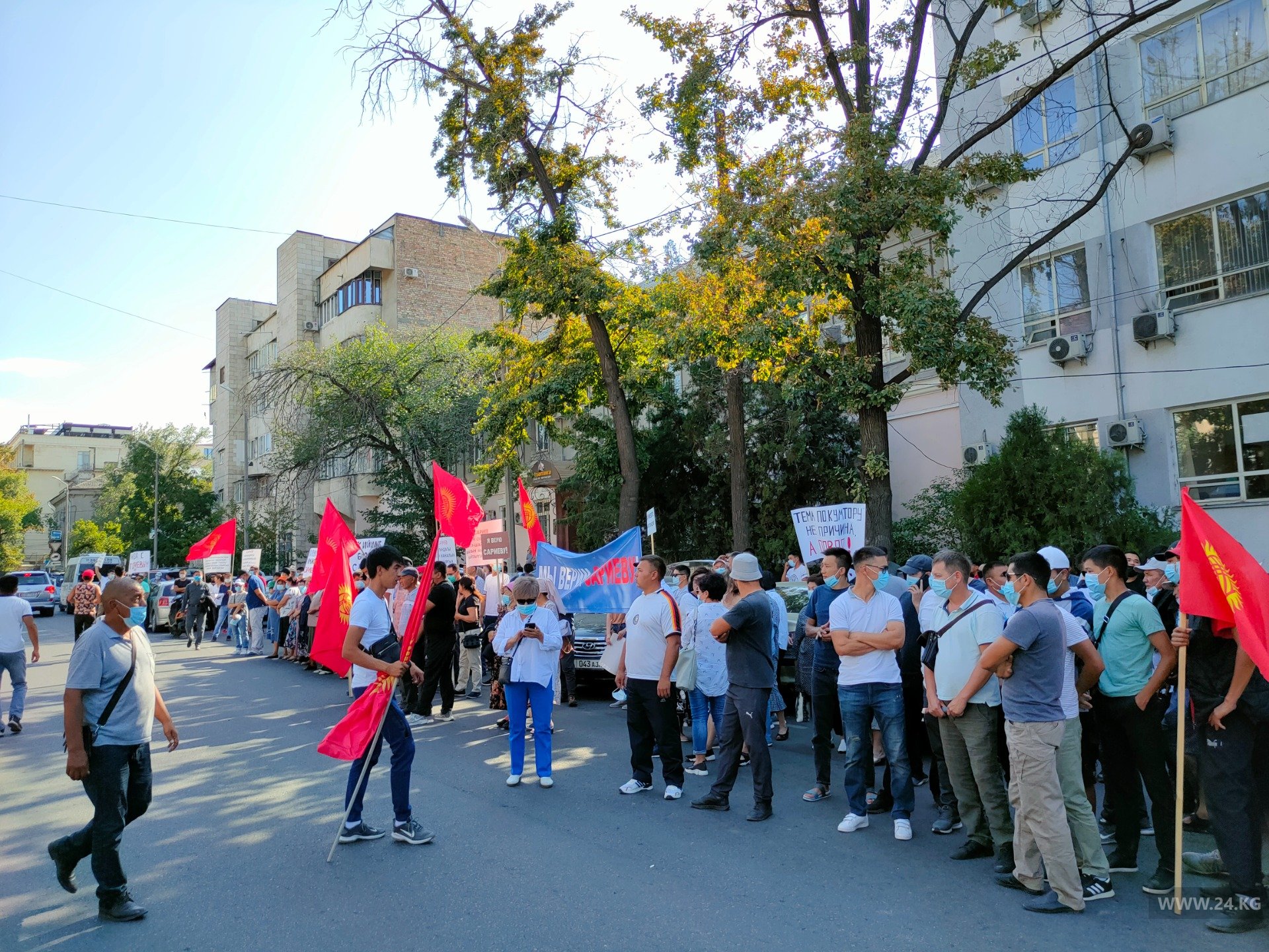 Число участников мирного митинга в поддержку экс-премьер-министра Темира Сариева возле Бишкекского городского суда увеличивается.