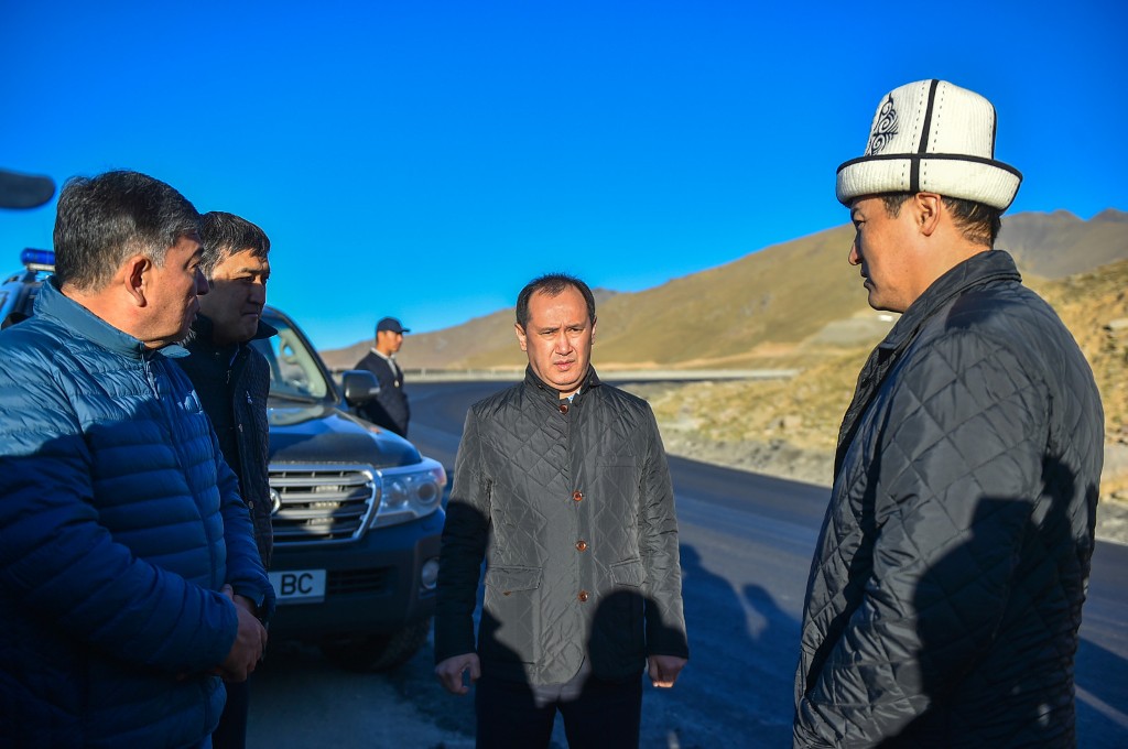 Улукбек Марипов проинспектировал ход ремонтных работ на участке автодороги Бишкек — Ош с южной стороны перевала Тоо-Ашуу. Об этом сообщает пресс-служба кабмина.