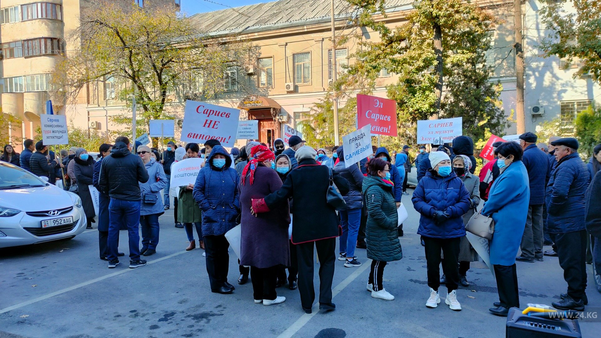 На акцию протеста вышли примерно 60 человек. Они скандируют: «Свободу Сариеву!», «Правда за Сариевым!».