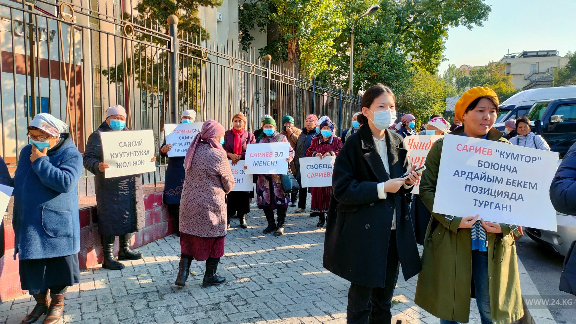 В Бишкеке возле здания городского суда митингуют сторонники экс-премьер-министра Темира Сариева.