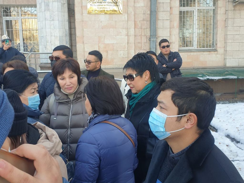 Около здания ЦИК собралось около 100 человек, не согласных с итогами голосования. Это представители партий «Улуттар биримдиги», «Ата Мекен», «Социал-демократы» и «Азаттык».