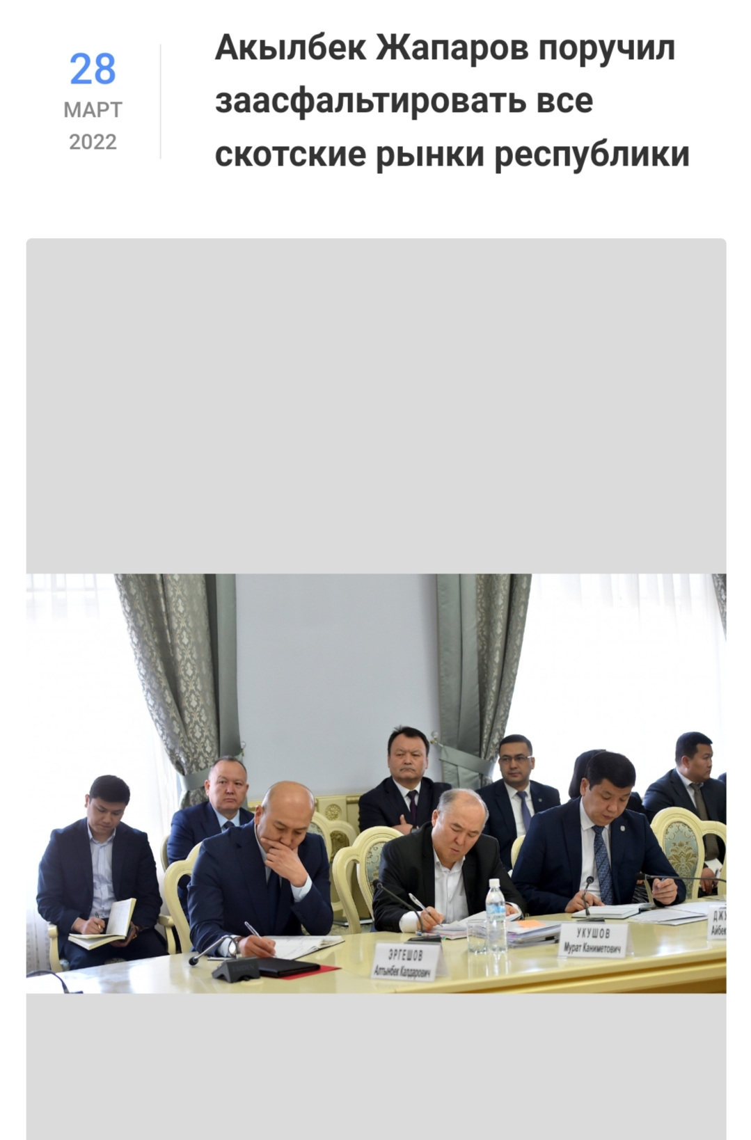 «Я вчера посмотрел видео, которое отправили мне посетители скотского рынка в городе Каракол. Люди утопают в грязи, элементарных условий для граждан нет и это происходит в городе, которая выбрана культурной столицей СНГ в 2022 году. Даю вам месячный срок все вычистить, заасфальтировать и доложиться. Это касается не только Каракола, но и всех скотских рынков республики. Лично проедусь и все проверю. Главы госадминистраций и мэры городов несут персональную ответственность за это», — сказал Акылбек Жапаров, очевидно имея в виду все-таки скотные рынки.
