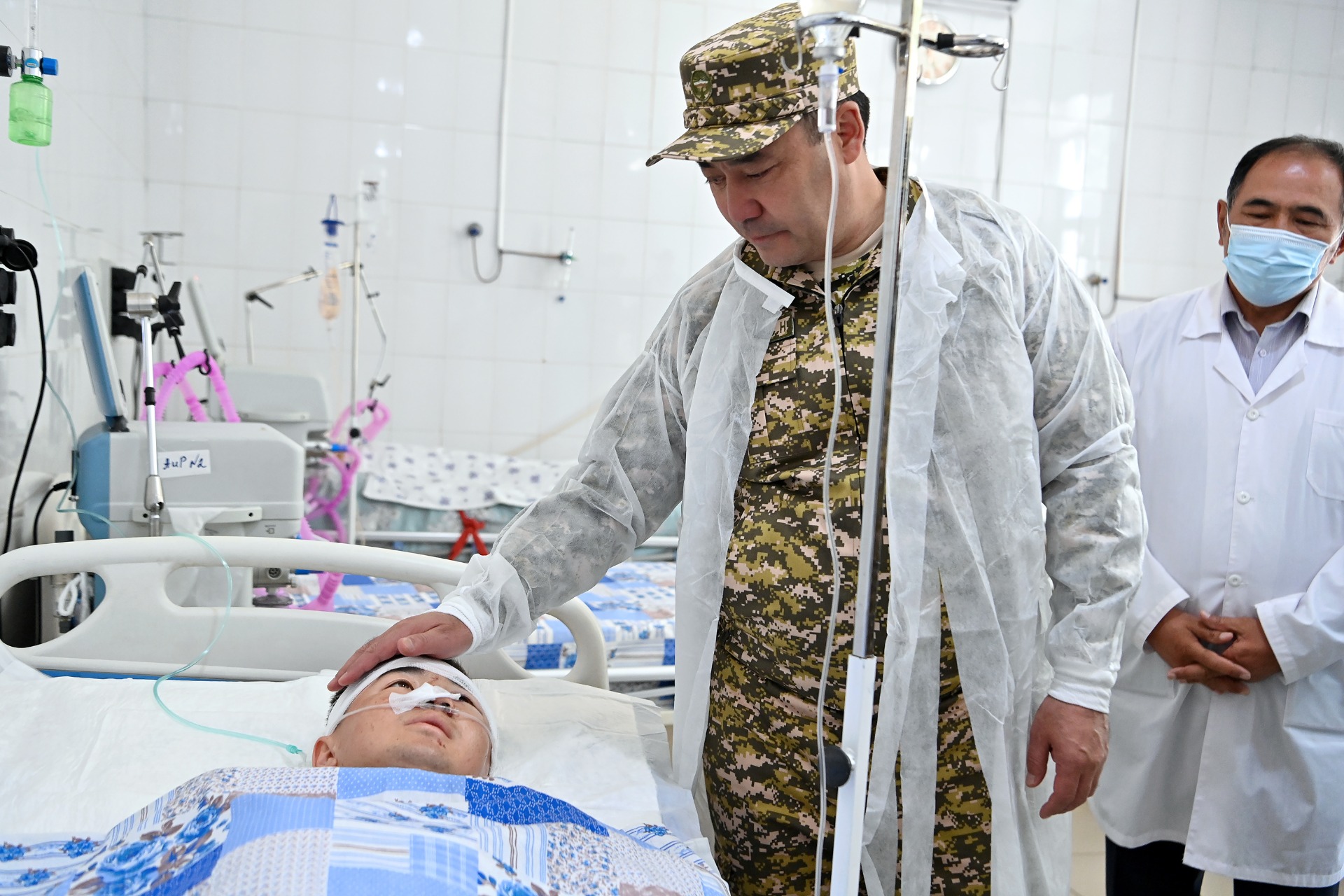Садыр Жапаров навестил пограничников, получивших ранения в ходе перестрелки на кыргызско-таджикском участке госграницы. Об этом сообщили в пресс-службе президента.