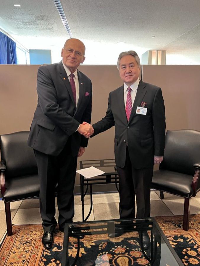В Нью-Йорке прошла встреча министра иностранных дел Кыргызстана Жээнбека Кулубаева с действующим председателем ОБСЕ, министром иностранных дел Польши Збигневом Рау. Об этом сообщила пресс-служба МИД КР.