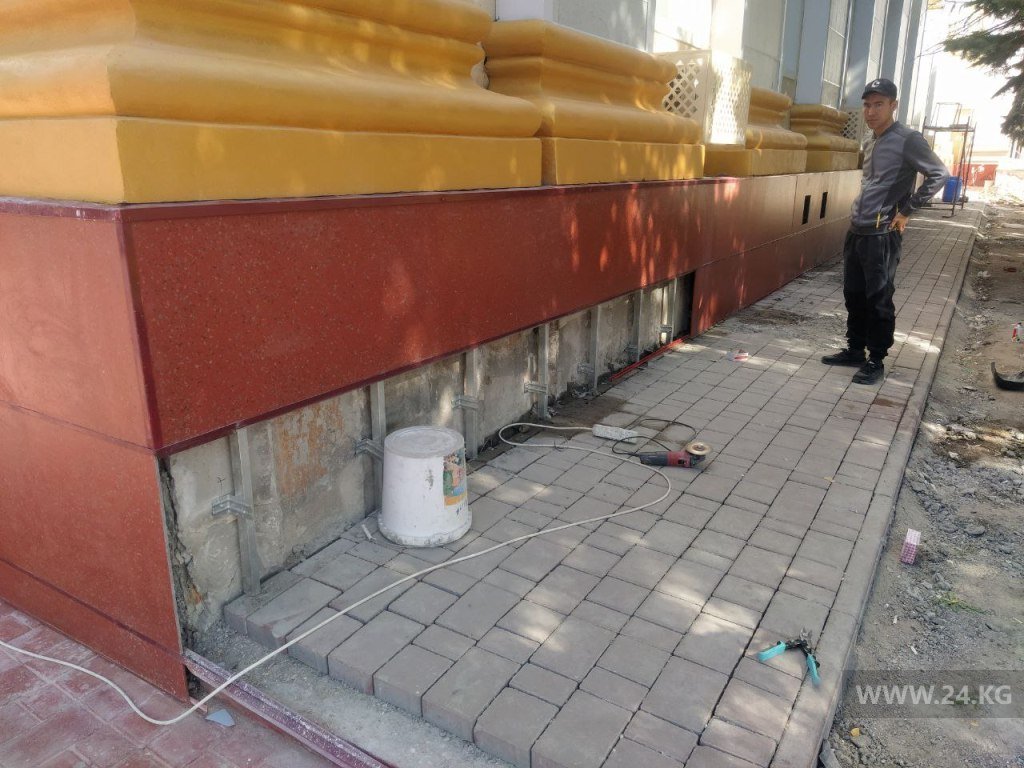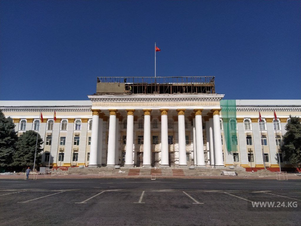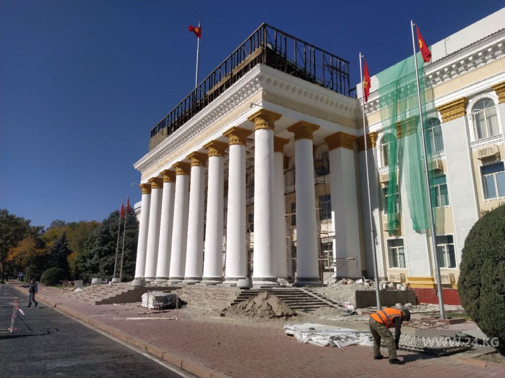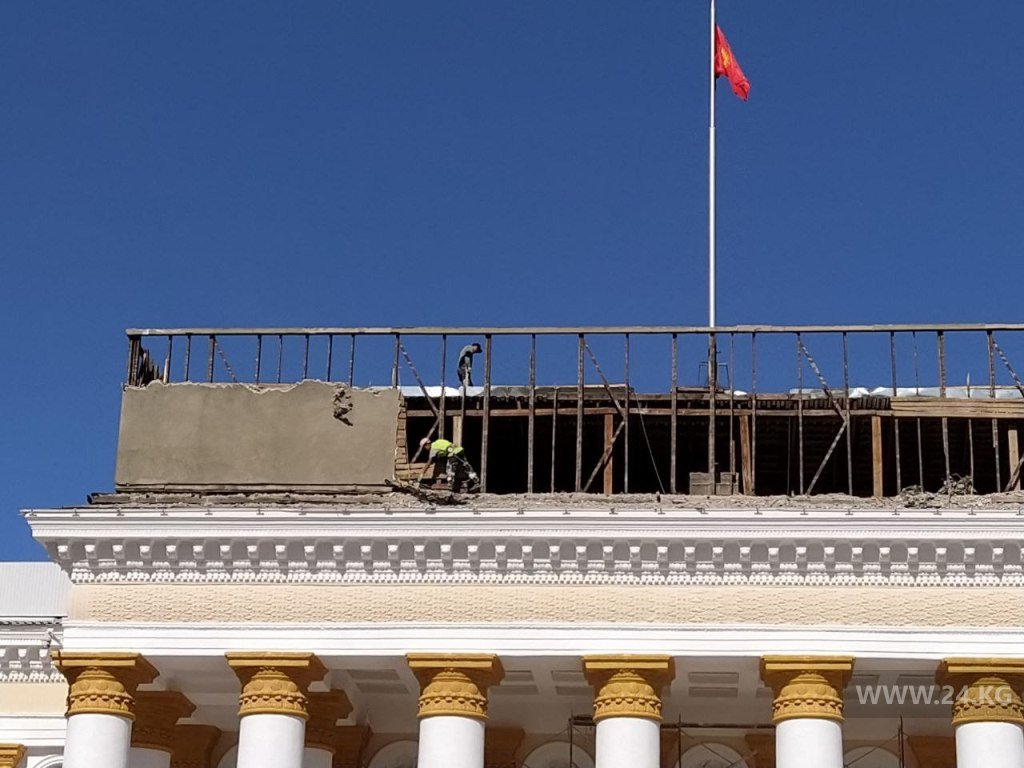 В аппарате кабинета министров редакции сообщили, что ремонтными работами занимается госпредприятие «Кыргызстройсервис». То, что строит новое здание администрации президента на месте снесенной гостиницы «Иссык-Куль». Ремонт, по информации ведомства, согласован с научно-исследовательским проектным институтом «Кыргыз реставрация» и проводится по разработанному специалистами проекту. Стоимость работ не озвучивается. Ожидается, что к концу октября они будут завершены.