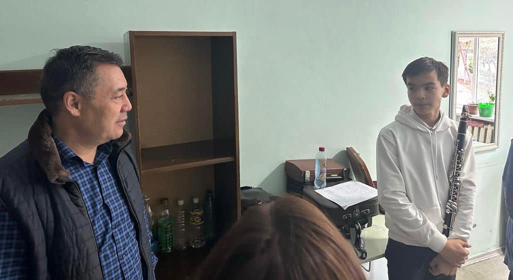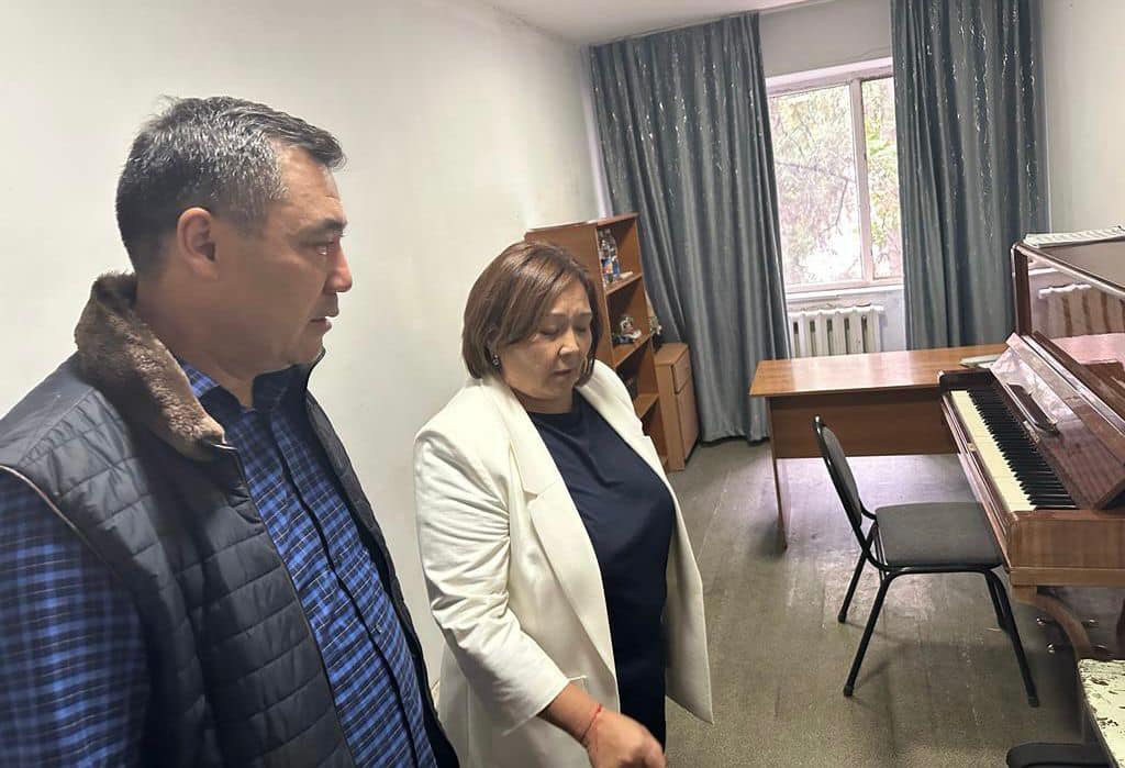 Садыр Жапаров посетил Республиканскую среднюю специальную музыкальную школу-интернат имени Мукаша Абдраева и Кыргызское государственное музыкальное училище имени Мураталы Куренкеева. Он осмотрел учебные корпуса, ознакомился с условиями и процессом обучения детей.