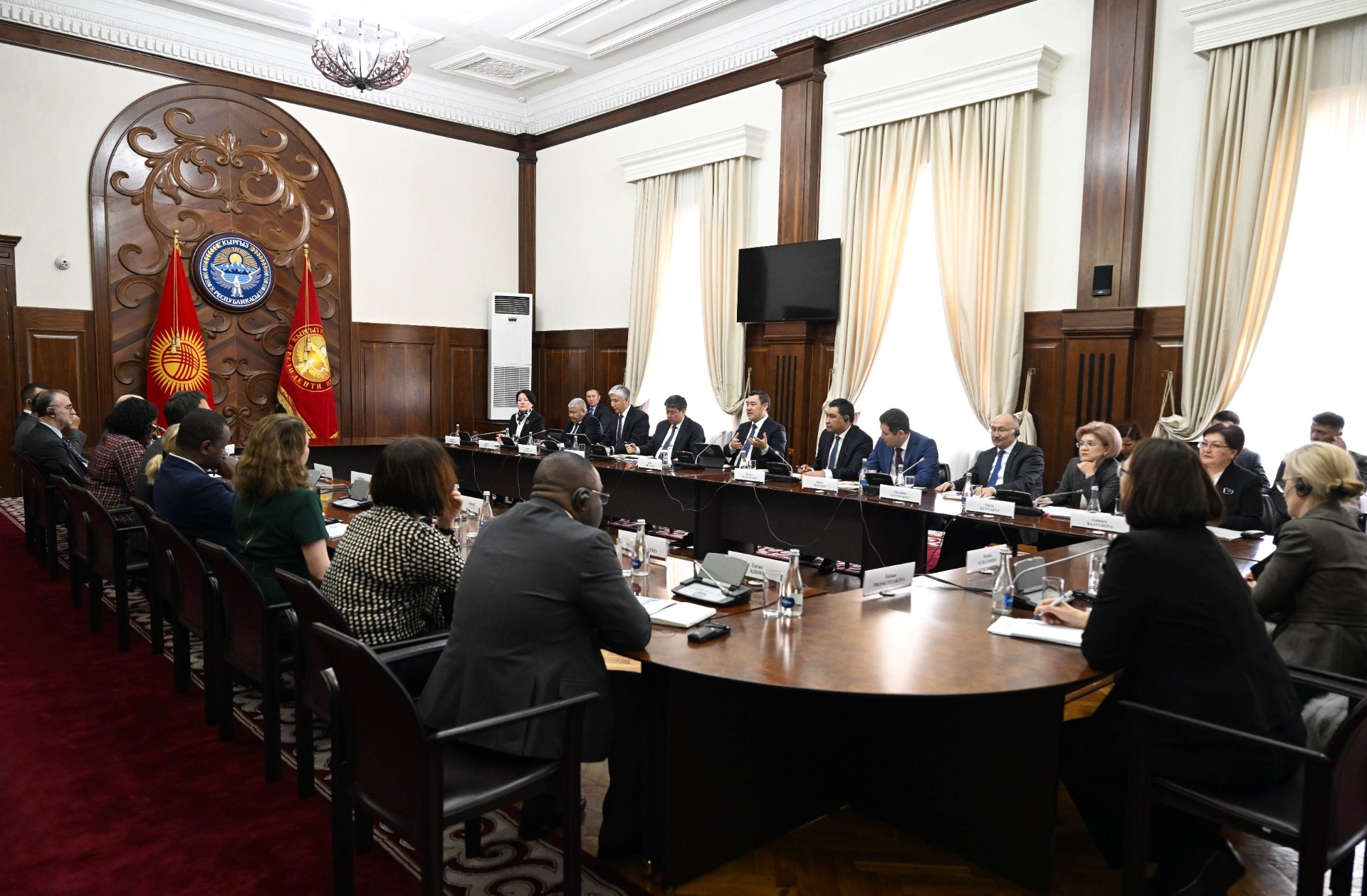 Садыр Жапаров высоко оценил вклад Всемирного банка в социально-экономическое развитие Кыргызской Республики, отметив, что наша страна находится на пути стабильного и динамичного развития. За последние два года достигнуты высокие темпы экономического роста (в 2022 году — 9 процентов, в 2023 году — 6,2 процента). Это самые высокие показатели за последние 10 лет. В прошлом году ВВП Кыргызстана впервые в истории страны достиг 1 триллиона 229 миллиардов сомов.