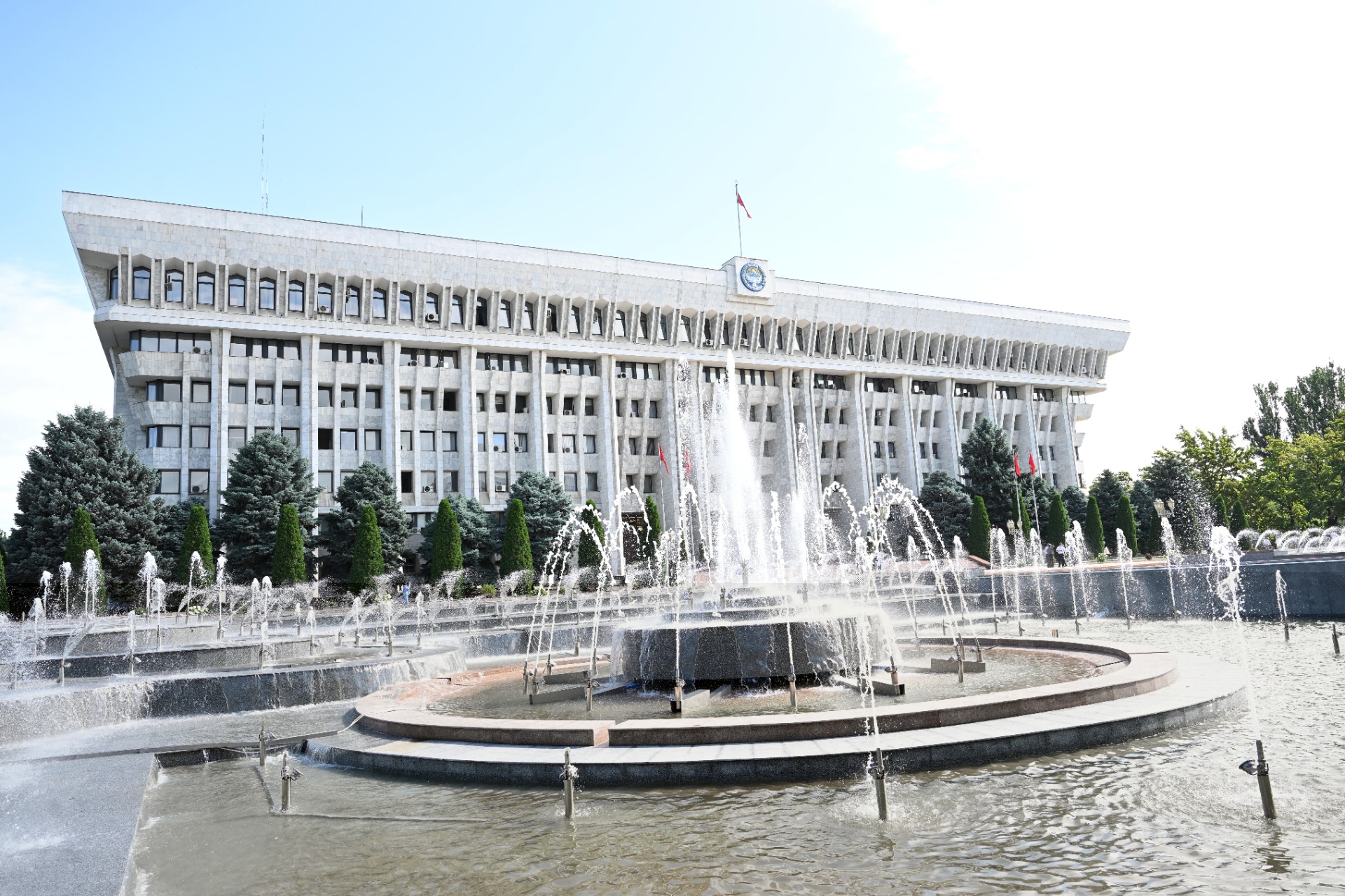 В Бишкеке запустили новый фонтан перед зданием Жогорку Кенеша. Об этом сообщает пресс-служба кабинета министров.