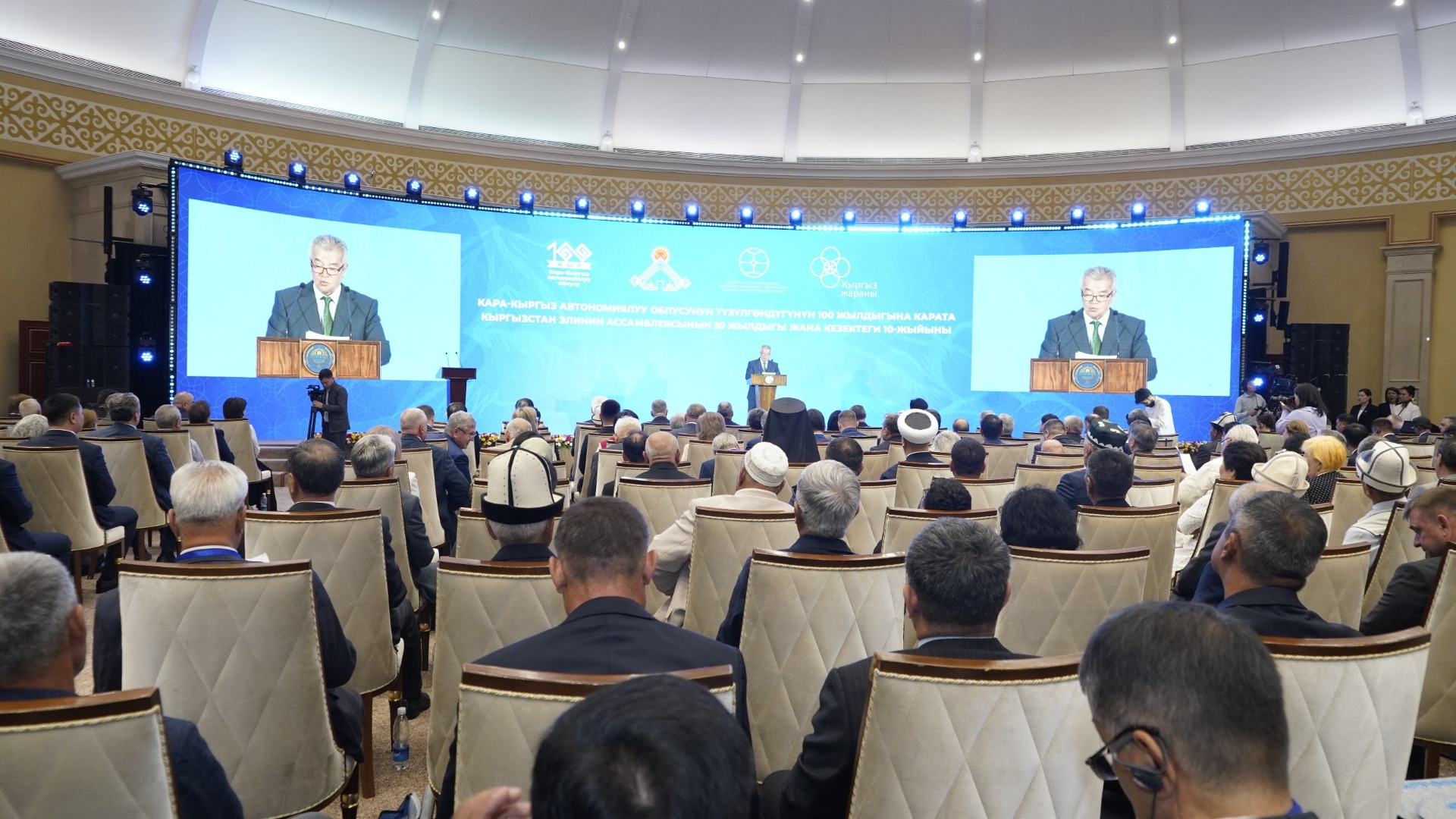 Садыр Жапаров направил обращение к делегатам и поздравил их с юбилеем. Обращение главы государства зачитал госсекретарь Суйунбек Касмамбетов.