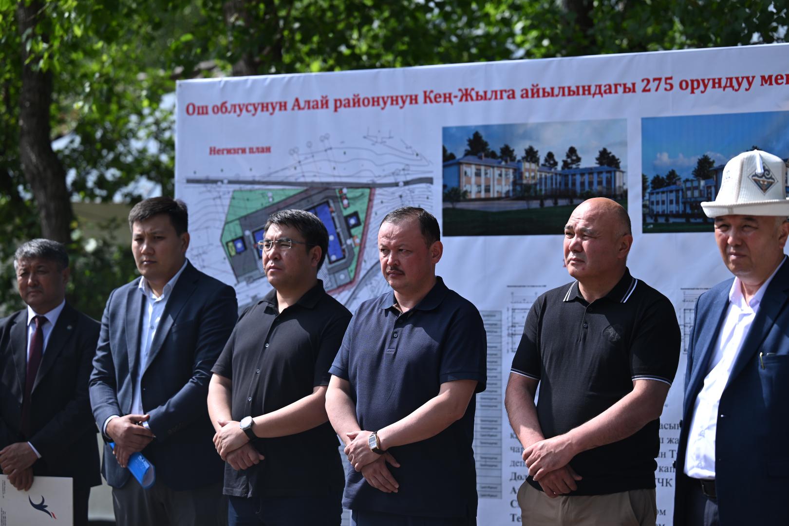 Торага Жогорку Кенеша Нурланбек Шакиев заложил капсулу под строительство нового здания средней школы имени Жоро Алимова № 27 в селе Кен-Жылга Алайского района Ошской области.
