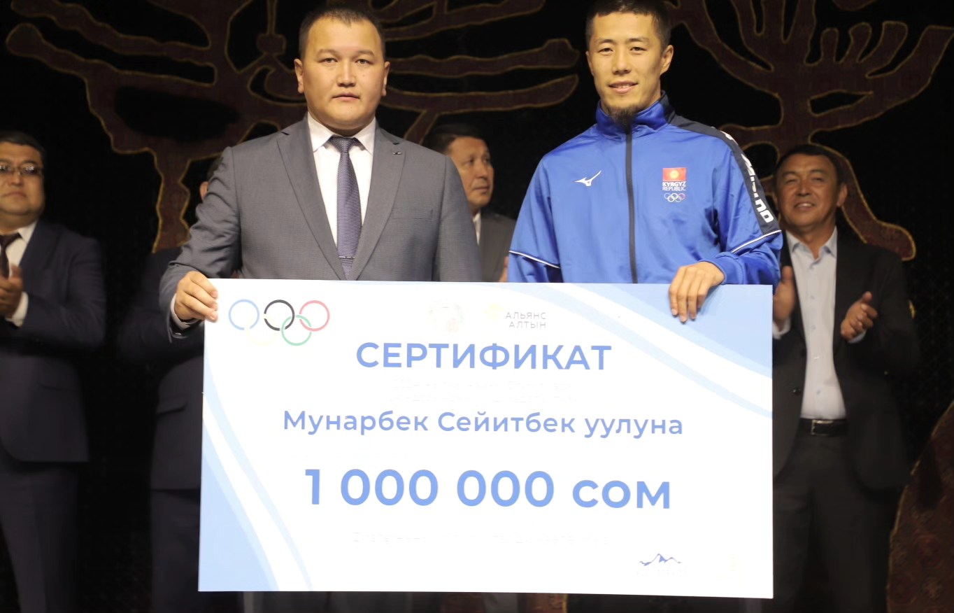 Глава региона Эрмат Джумаев поздравил спортсменов и вручил серебряному призеру Олимпийских игр Мээрим Жуманазаровой 3 миллиона сомов. Другой серебряный медалист Мунарбек Сейитбек уулу получил 1 миллион.