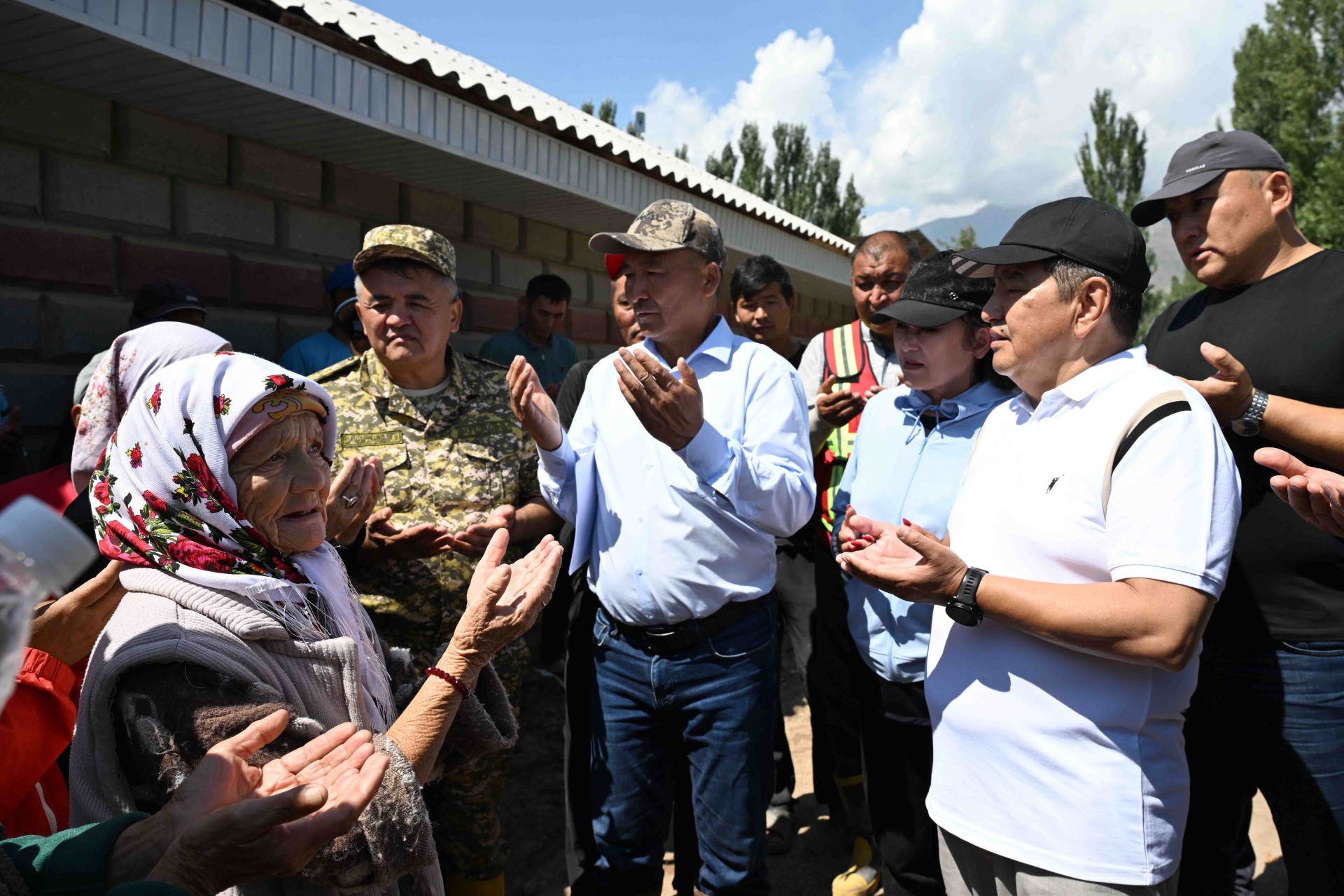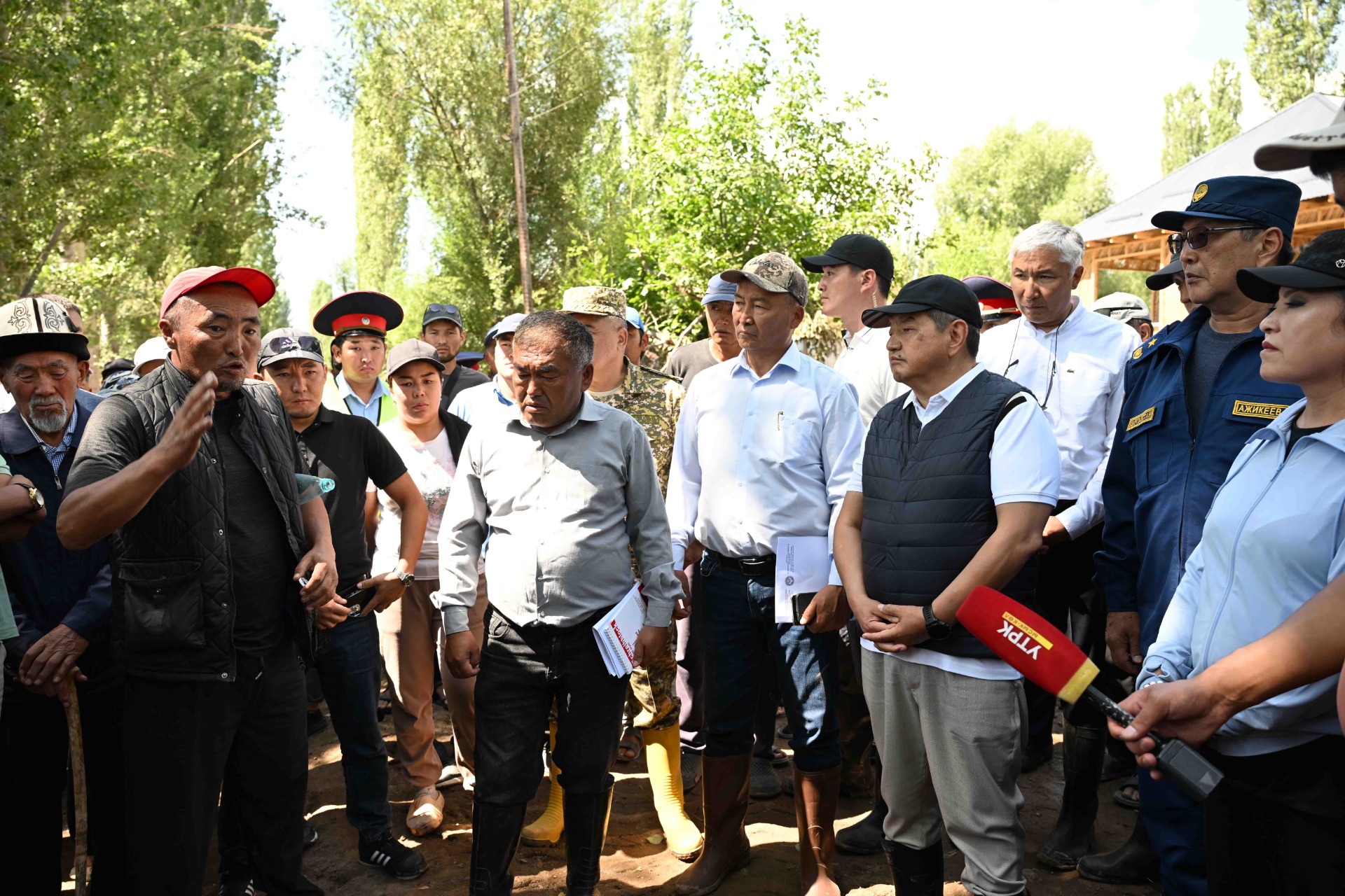 Жапаров осмотрел село Темир в айыльном аймаке Садыр-Аке, где ознакомился с масштабами ущерба и провел обсуждения с представителями местных властей и Министерства чрезвычайных ситуаций о мерах по устранению последствий.