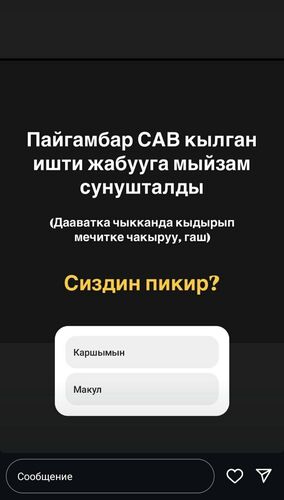 Аскат Алагозов поделился публикацией одного из блогеров, который заявил, что закон придуман для запрета даавата (проповедь), и провел на своей странице голосование среди своих подписчиков.