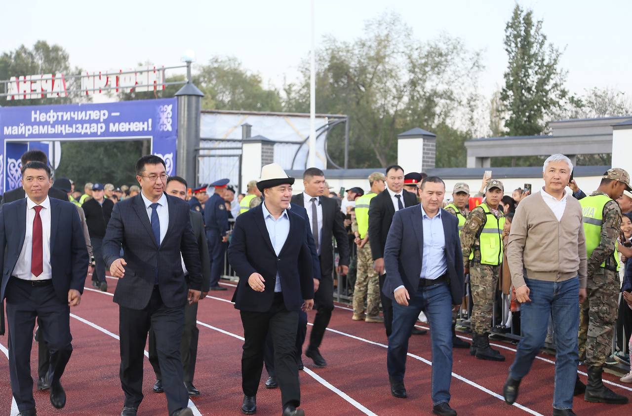 Президент Садыр Жапаров сегодня, 28 сентября, принял участие в открытии стадиона «Нефтчи» в Кочкор-Ате после его полной реконструкции.