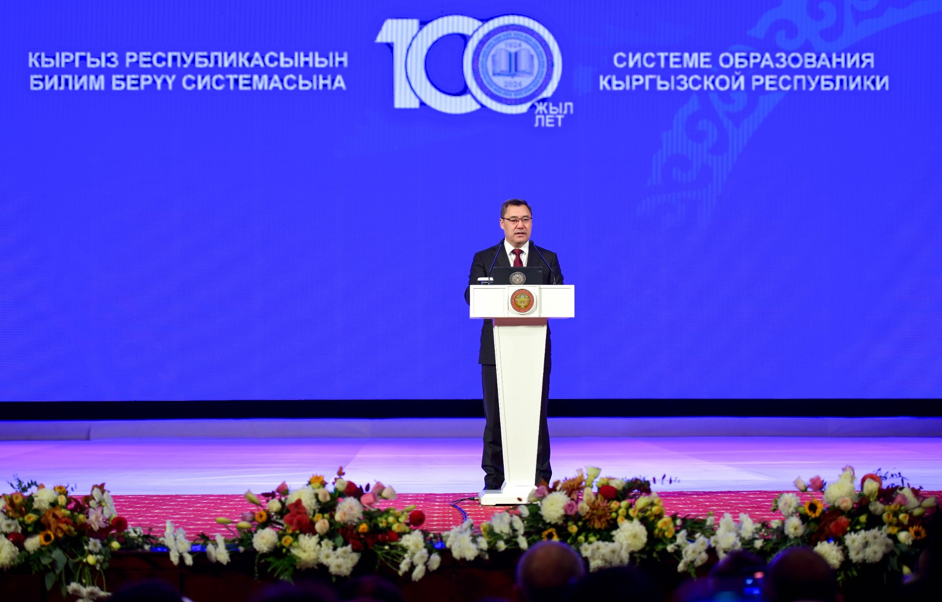 На праздничном концерте в Кыргызской государственной филармонии имени Токтогула Сатылганова, посвященном 100-летию образования системы образования, президент Садыр Жапаров поздравил учителей и работников этой сферы. Об этом сообщает пресс-служба главы государства.