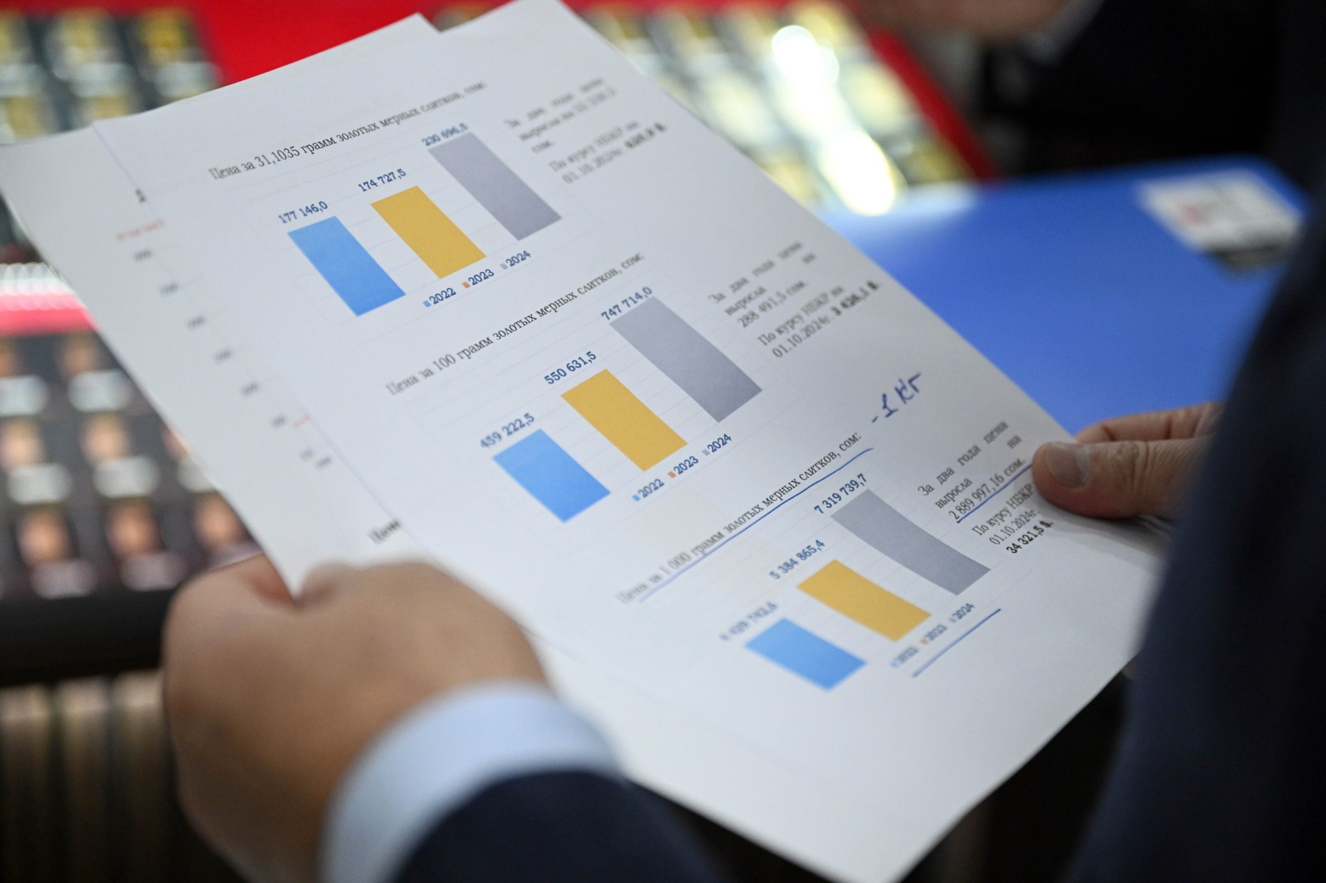 Садыр Жапаров подчеркнул, что покупка золотых мерных слитков отечественного производства является надежным и доходным способом вложения средств. Он призвал состоятельных граждан вкладывать свои накопления в золото, так как его стоимость растет ежегодно.
