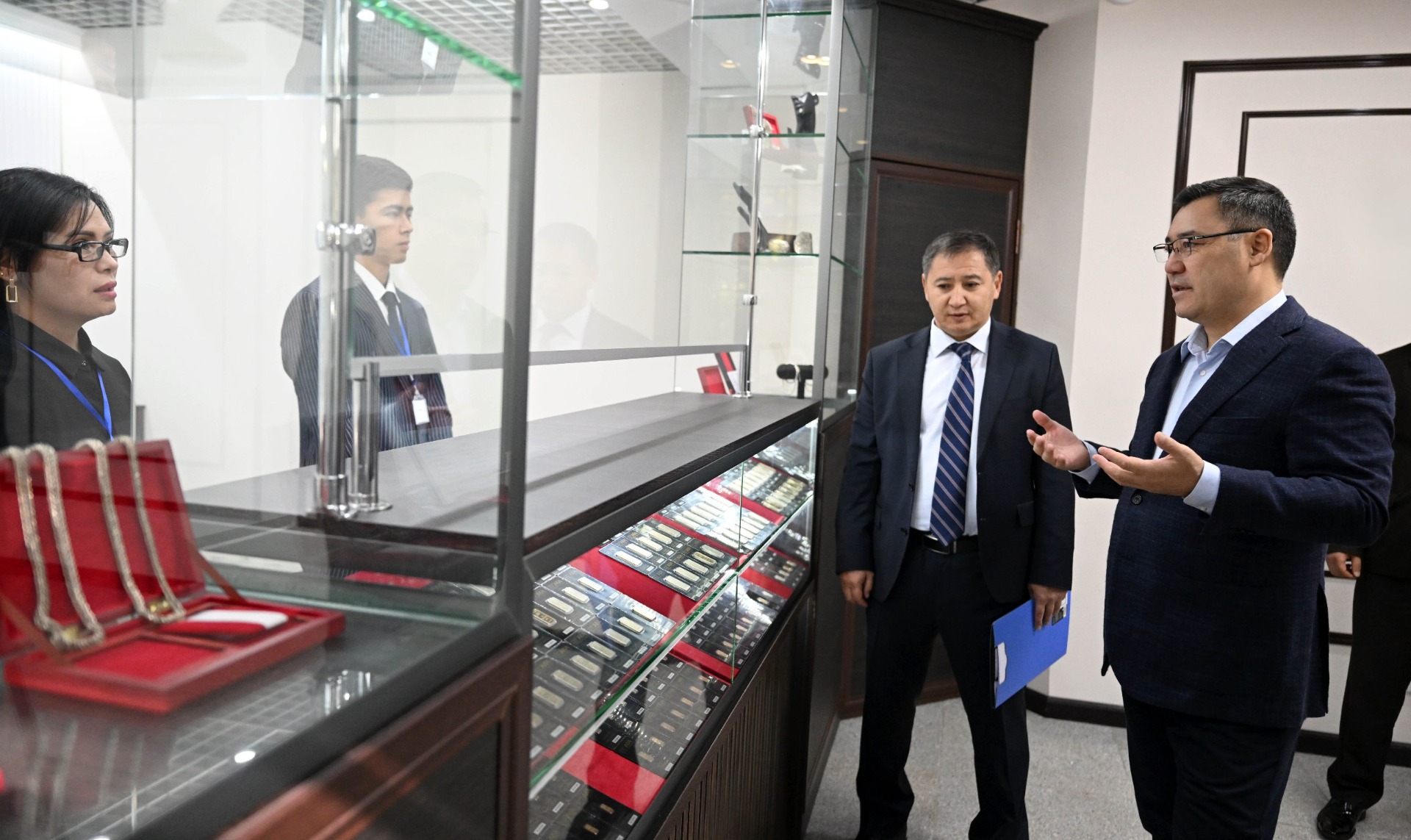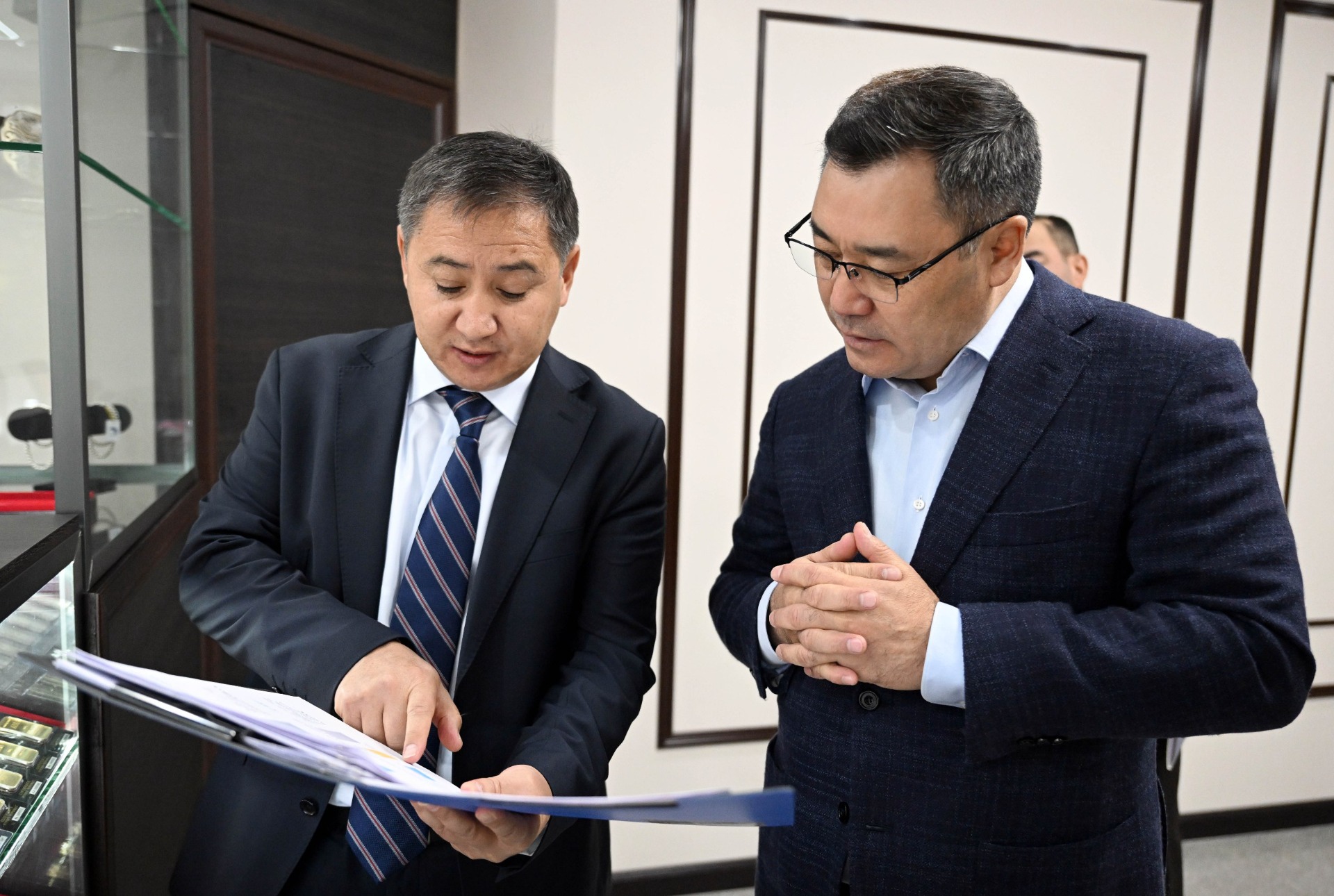 Садыр Жапаров посетил фирменный магазин по продаже мерных золотых слитков открытого акционерного общества «Кыргызалтын». Об этом сообщает пресс-служба президента.