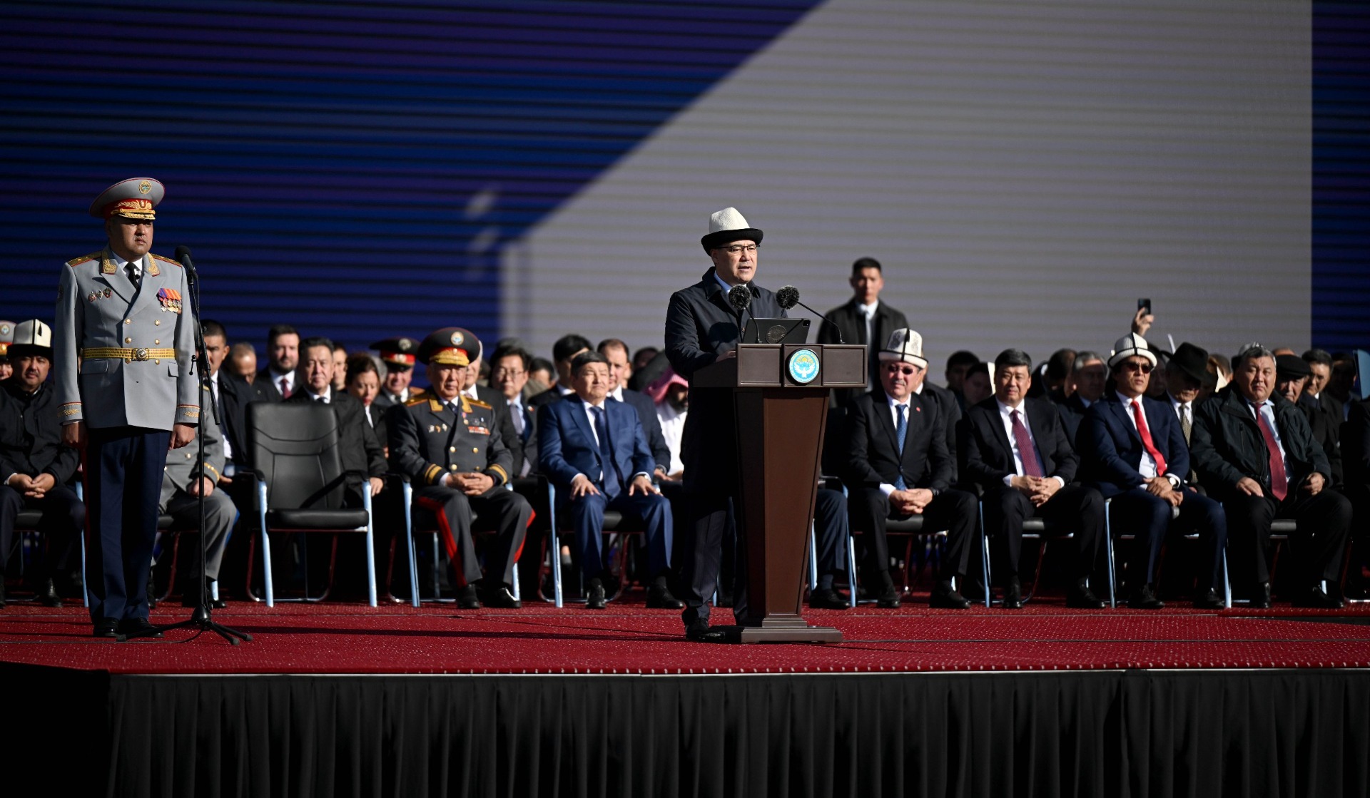 Президент Садыр Жапаров поздравил сотрудников Министерства внутренних дел со 100-летием кыргызской милиции на торжественном мероприятии, состоявшемся сегодня, 1 ноября, на площади Ала-Тоо в Бишкеке.