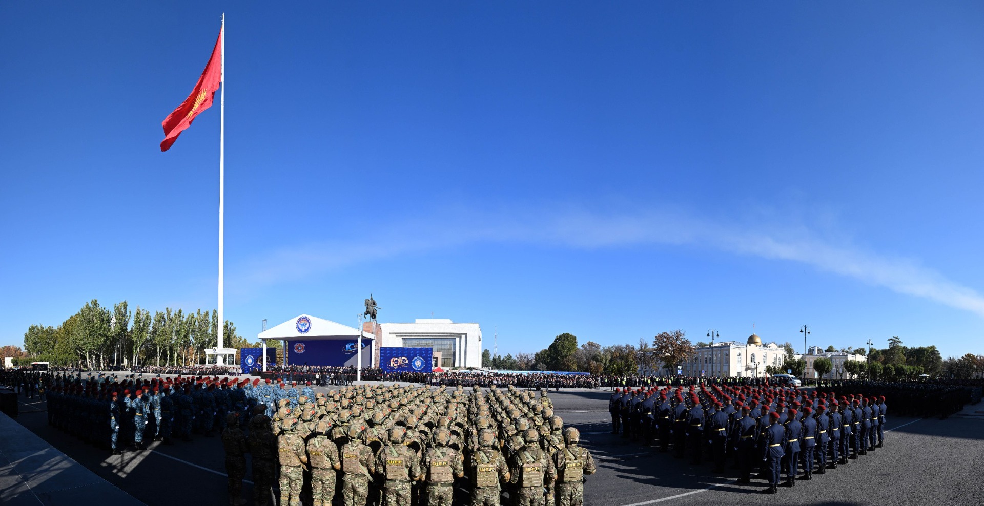 Сегодня мы вместе с вами отмечаем историческую дату — 100-летний юбилей кыргызской милиции, прошедшей великий путь длиной в целый век. Этот путь был полон сложных и опасных задач, тяжелых испытаний, которым милиция достойно противостояла на протяжении всей своей истории.