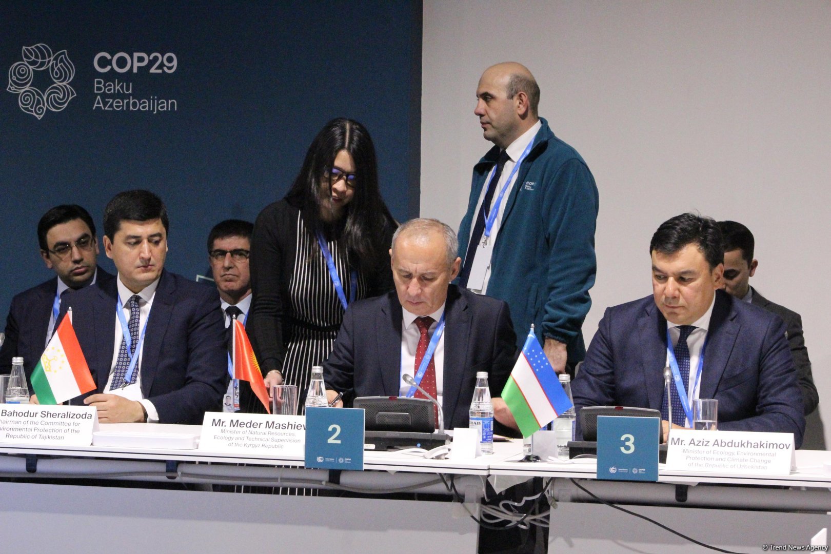 Президент COP29 и министр экологии Азербайджана, министры экологии Казахстана, Кыргызстана, Таджикистана и Узбекистана подписали Декларацию о поддержке сохранения ледников с главой АБР и директором по инвестициям ЗКФ.
