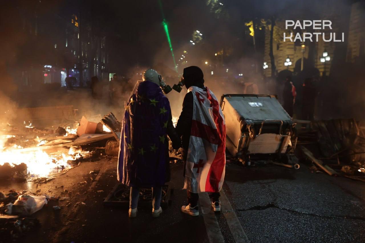 Ночью 2 декабря протестующих разгоняли с помощью слезоточивого газа и водометов, в ответ демонстранты отстреливались петардами и фейерверками, на площади Руставели митингующие подожгли покрышки. После разгона акций полиция задерживала людей в аптеках, метро и парках.