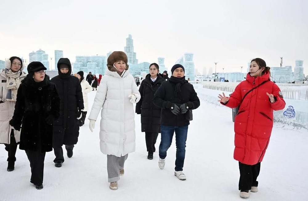 Первая леди Кыргызстана Айгуль Жапарова и Чрезвычайный и Полномочный Посол Китая в КР Лю Цзьньпин посетили Харбинский фестиваль ледяных скульптур.