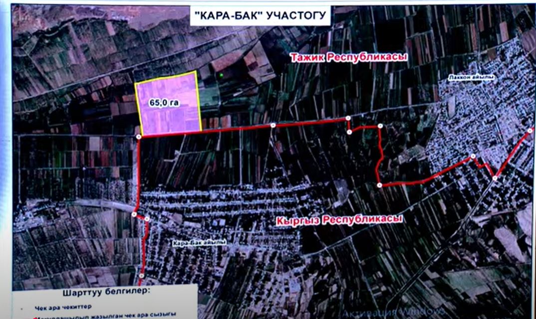 Также Кыргызстан отдал 65 гектаров земли участка Кара-Бак. Это местность в Баткенской районе.
