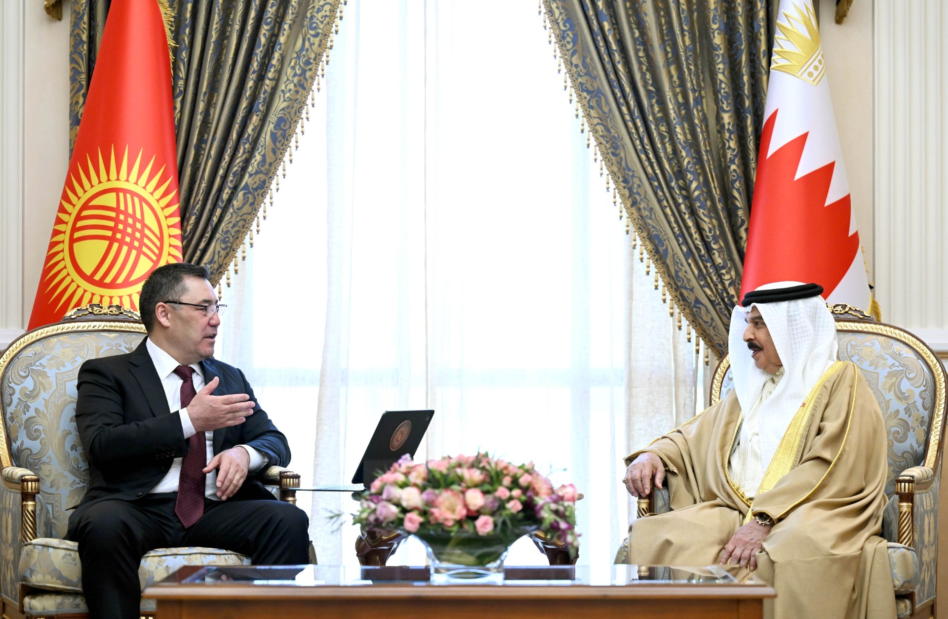 Президент Садыр Жапаров в рамках официального визита в Бахрейн сегодня провел переговоры с королем Хамадом бин Иса Аль Халифой. Об этом сообщает пресс-служба главы государства.