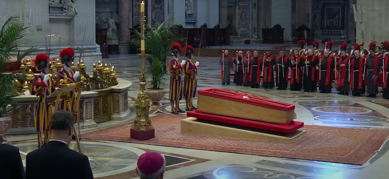 Для верующих и гостей открыта площадь Святого Петра, где состоится прощальная месса. После мессы траурная процессия пройдет по улицам Рима мимо главных достопримечательностей, включая Колизей.