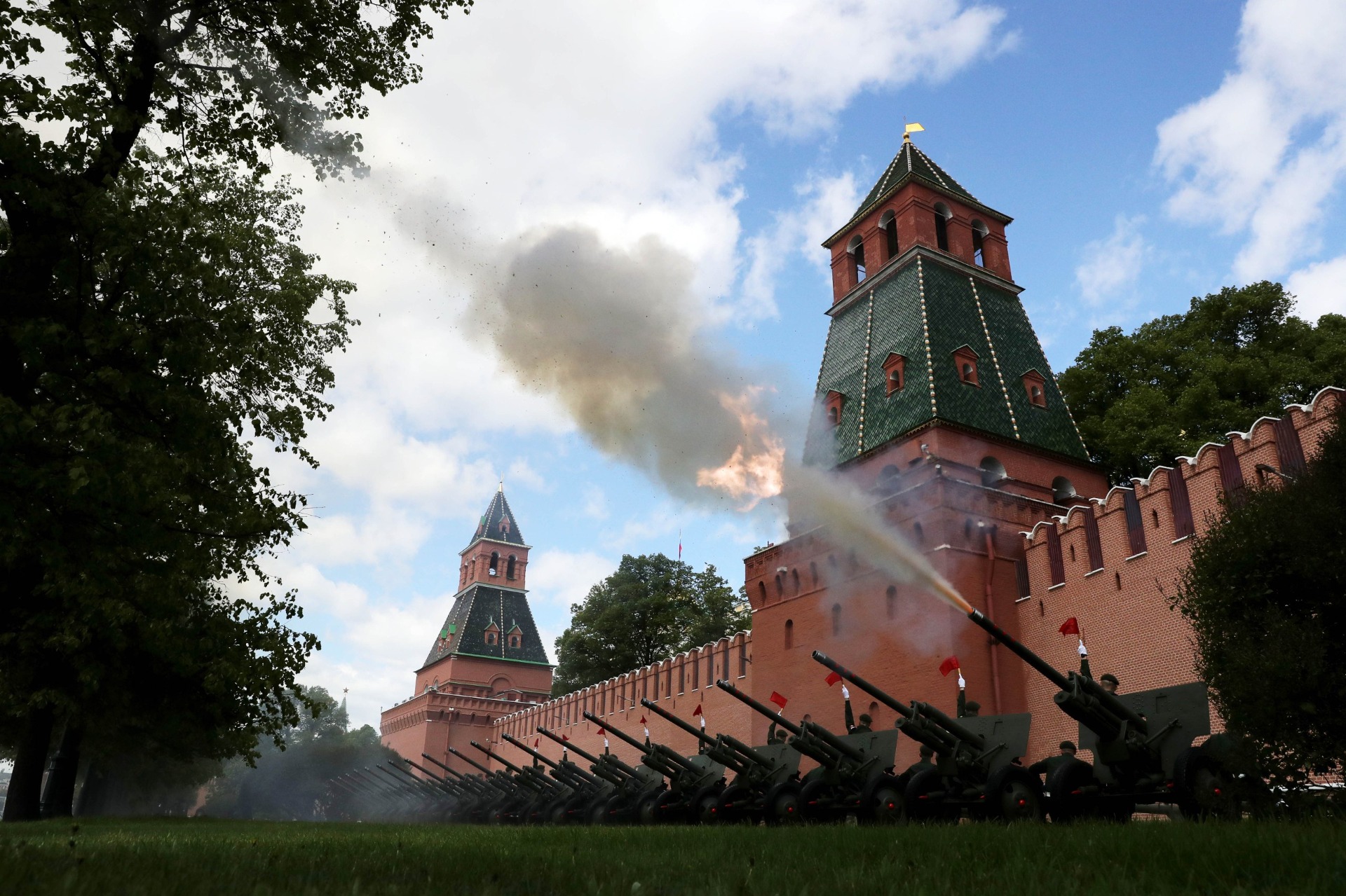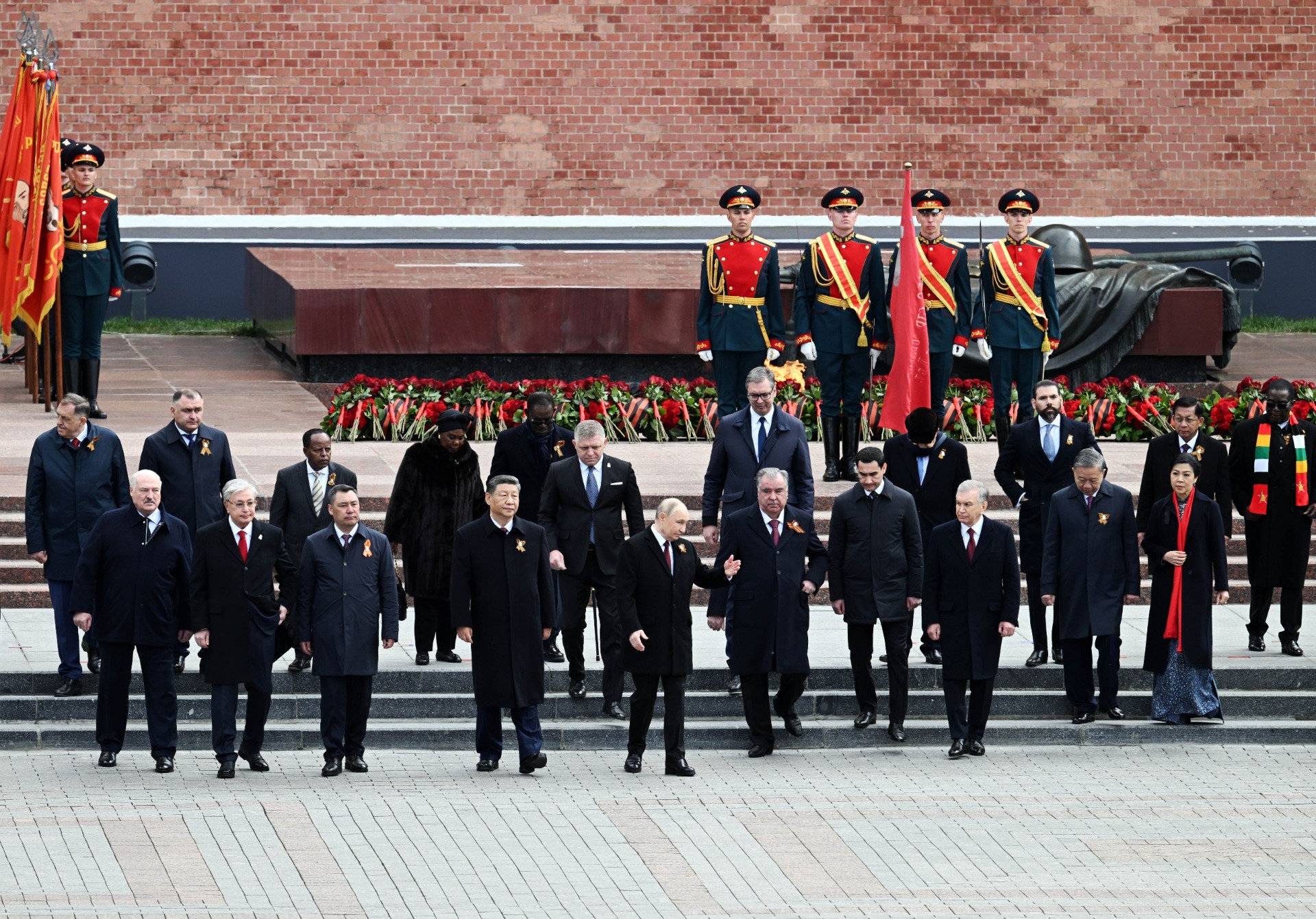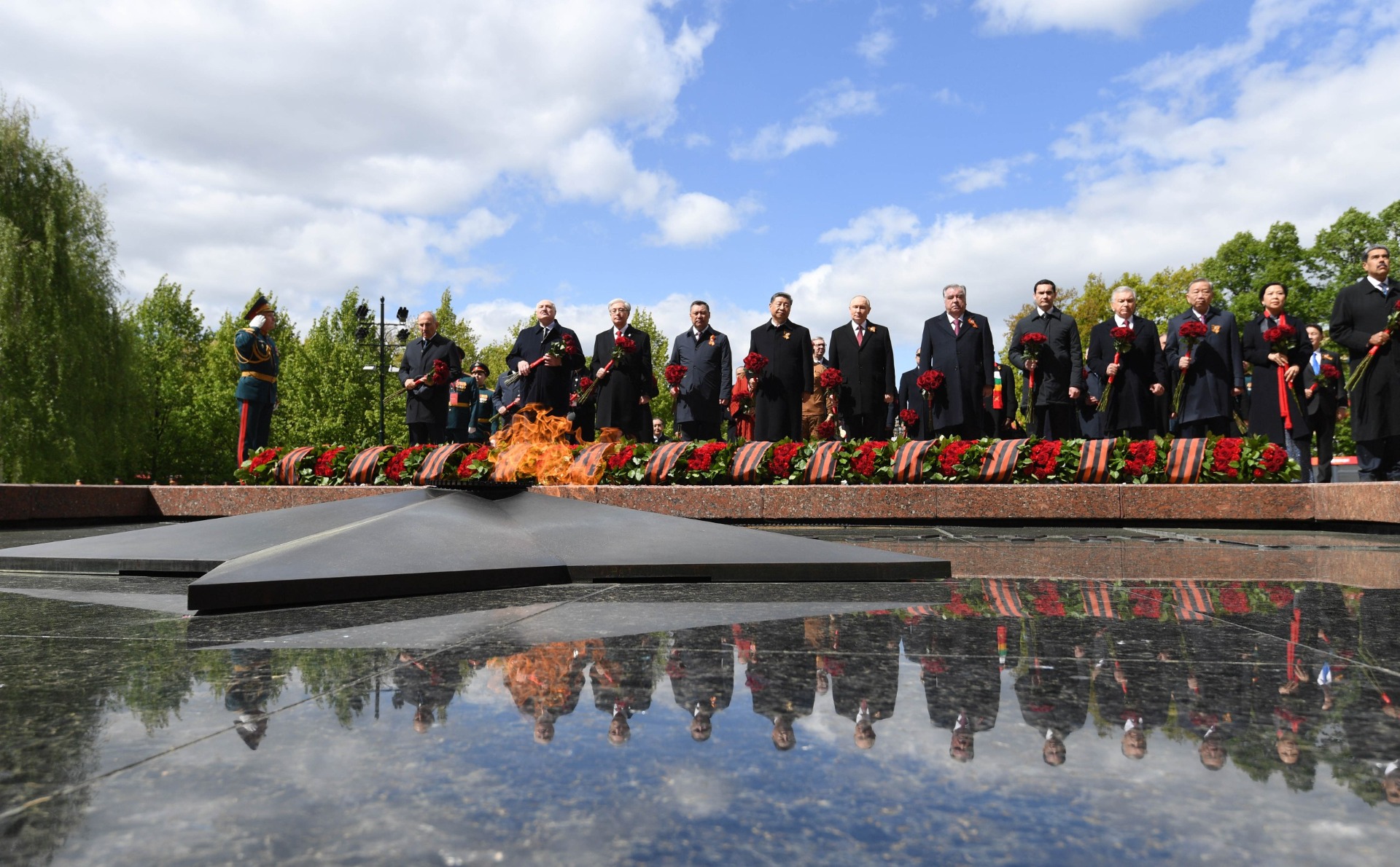 После парада главы государств возложили цветы к Могиле Неизвестного Солдата в Александровском саду.