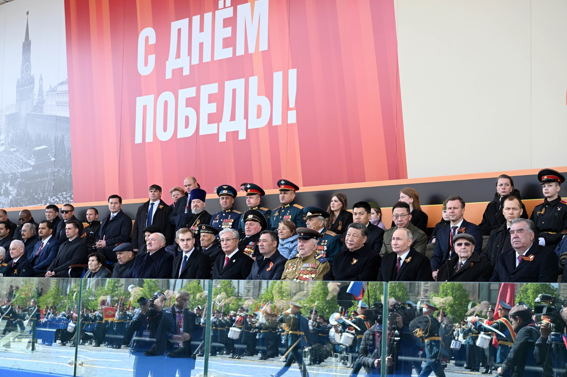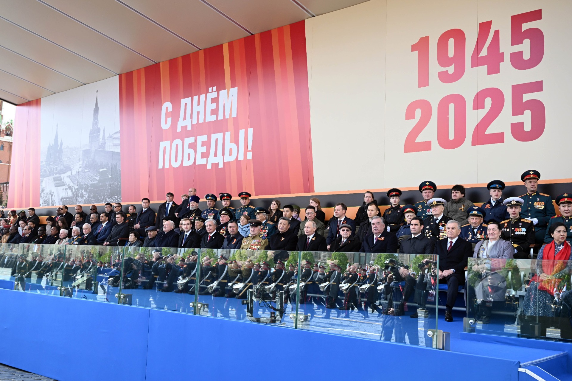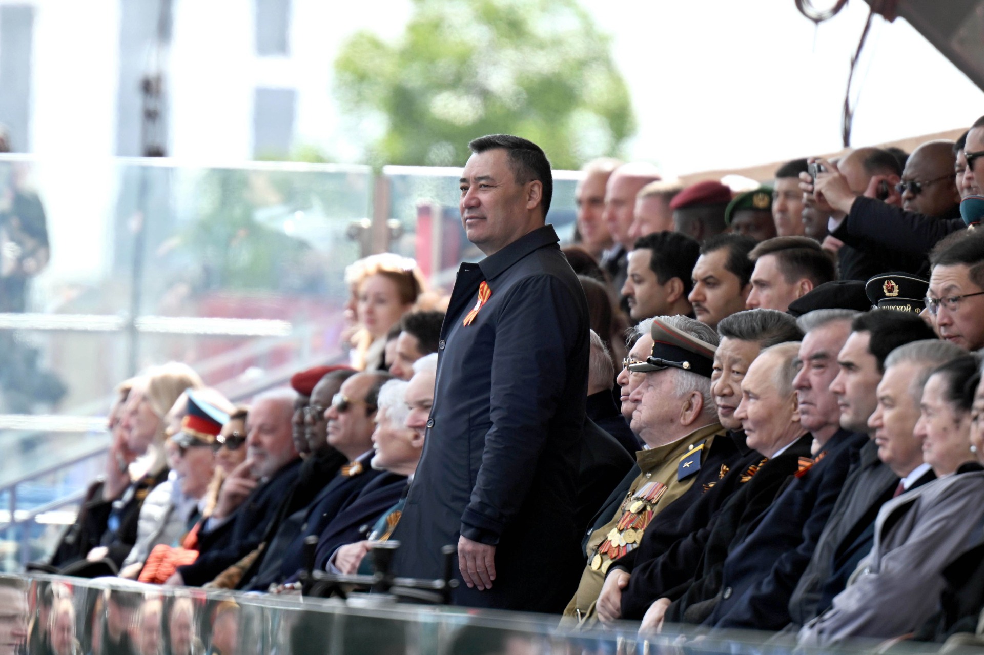 Вместе с Садыром Жапаровым в параде участвовали лидеры России, Китая, Беларуси, Казахстана, Таджикистана, Узбекистана и Туркменистана, а также главы и премьеры других стран Азии, Африки, Латинской Америки и Европы.