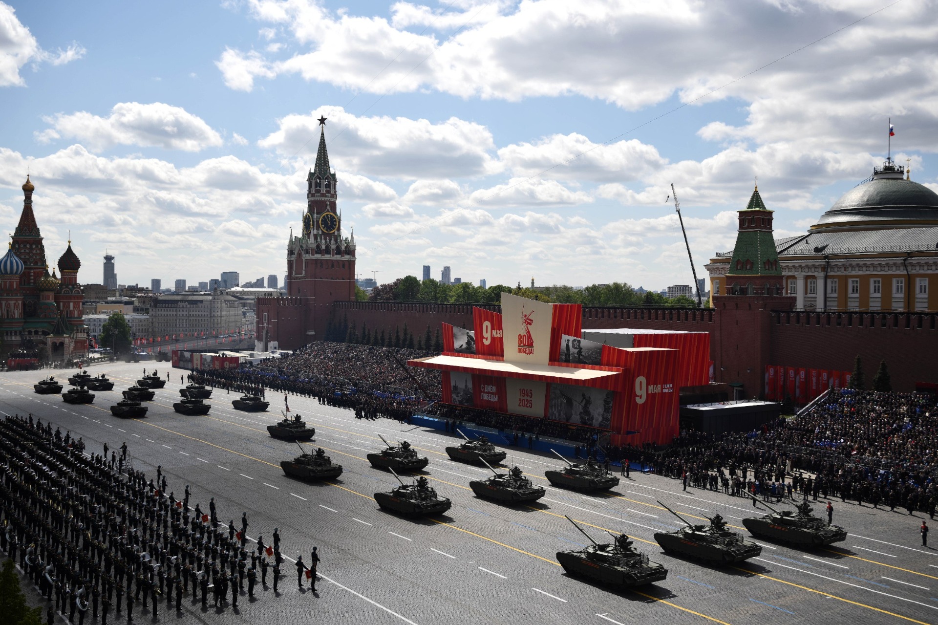 В торжественном мероприятии участвовали около 10 тысяч человек. По площади прошли пешие колонны различных родов войск, а также проехали более 130 единиц военной техники и авиации.