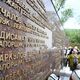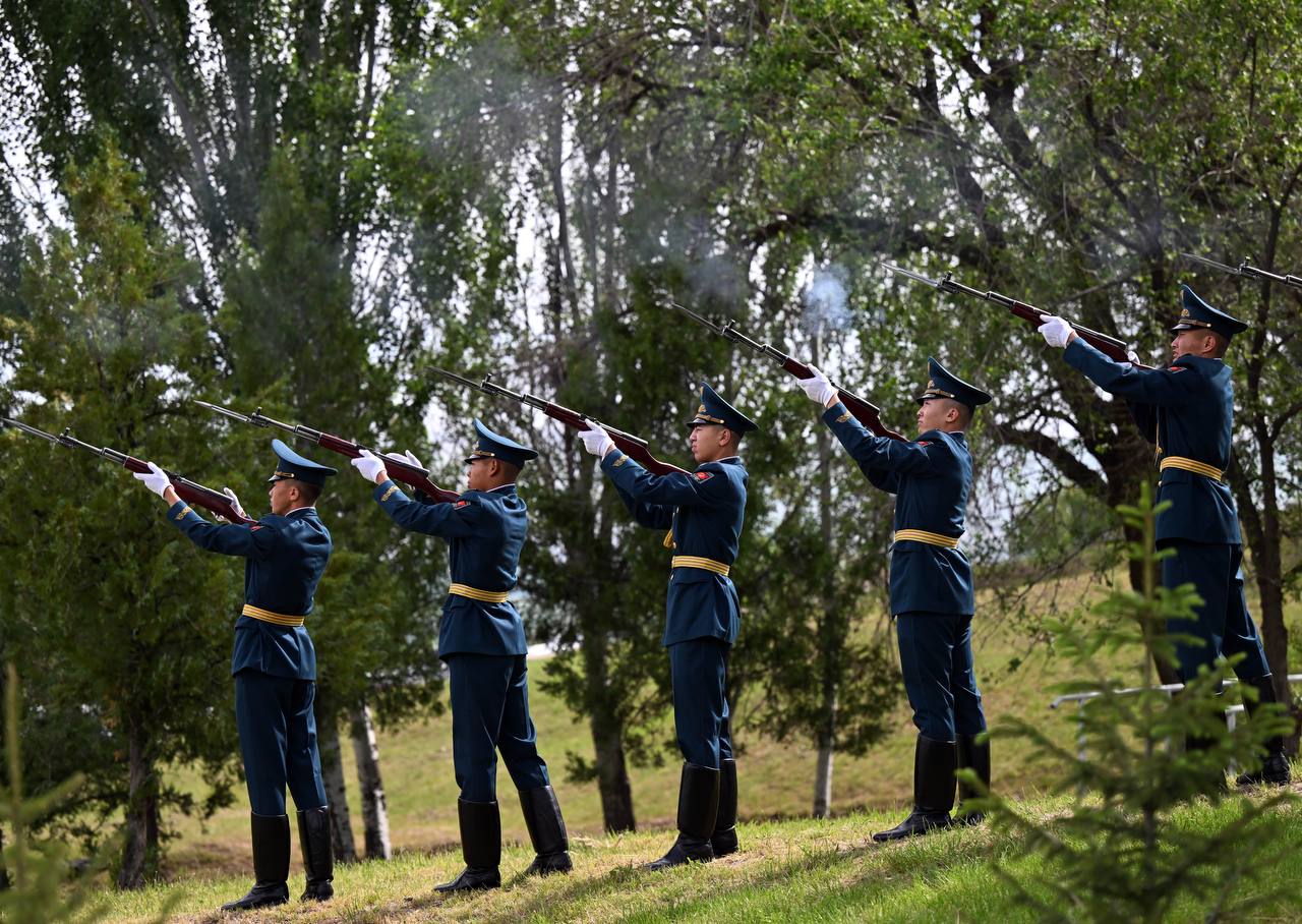 Военнослужащие сняли полотно с памятника, после чего исполнен Государственный гимн Кыргызской Республики. После возложения цветов к мемориалу участники почтили память погибших минутой молчания. Затем произведен троекратный оружейный залп.