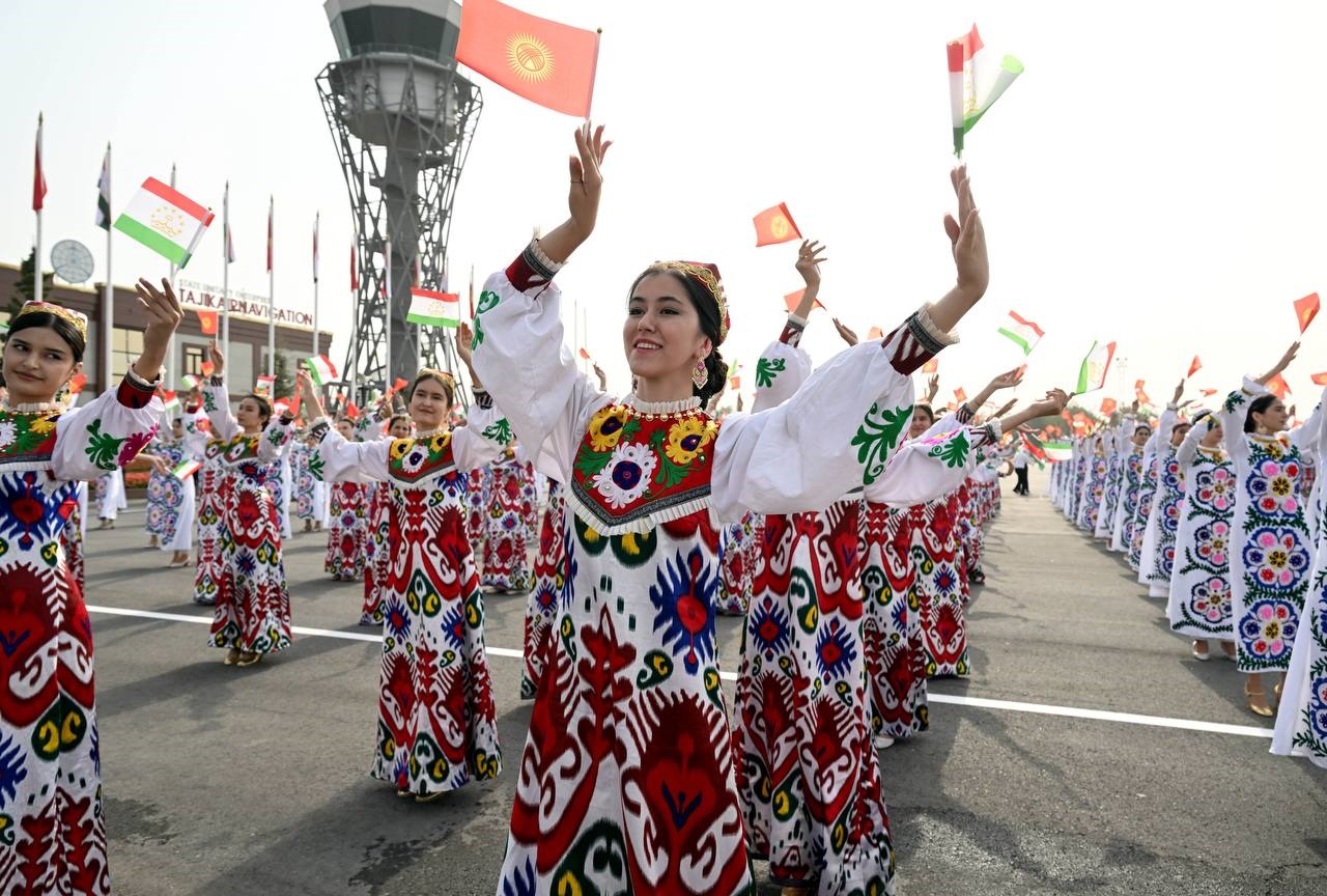 После взаимных приветствий, лидеров стран приветствовали юноши и девушки в национальных костюмах. Далее для глав государств представлена краткая концертная программа c участием более 500 артистов.