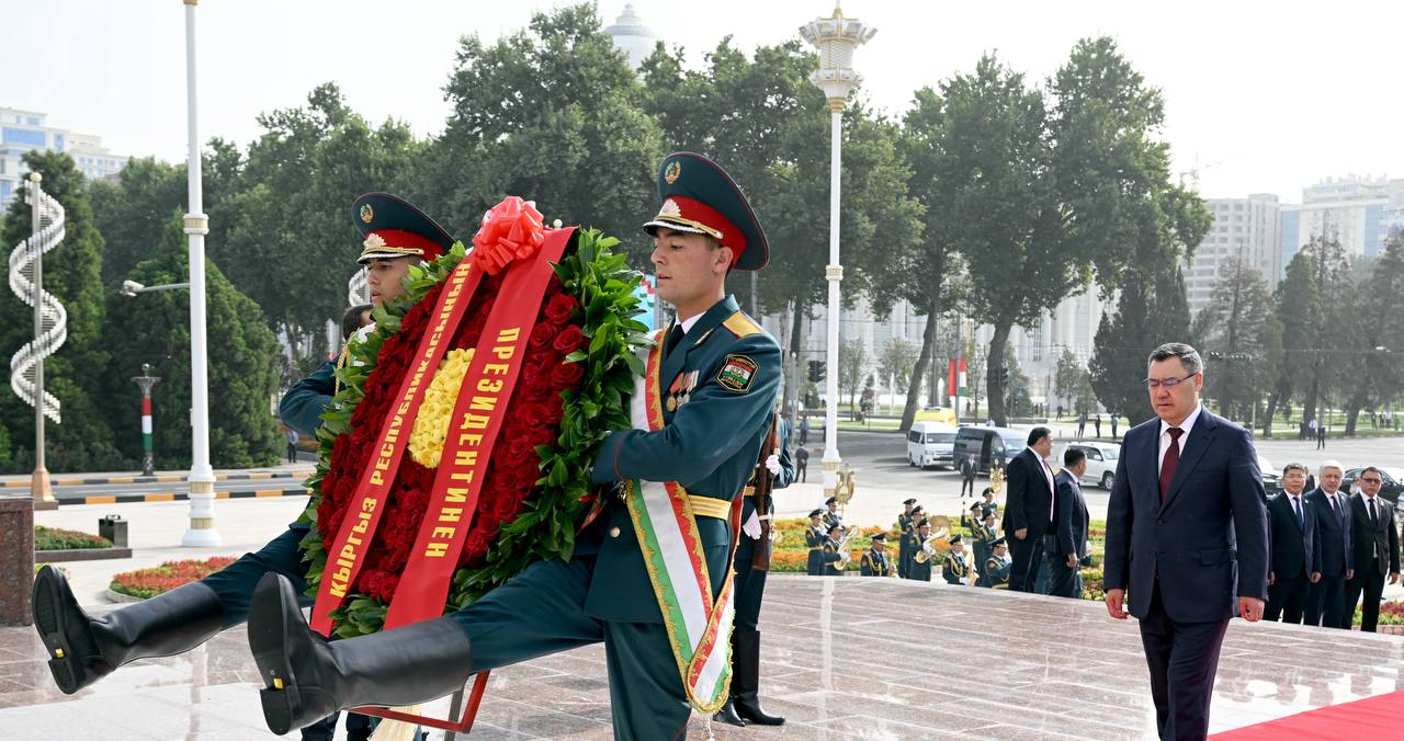 Ранее Садыр Жапаров также возложил венок к памятнику Исмоила Сомони в Душанбе. Монумент установлен на площади Дусти и является центральной частью мемориала, посвященного национальному единству.