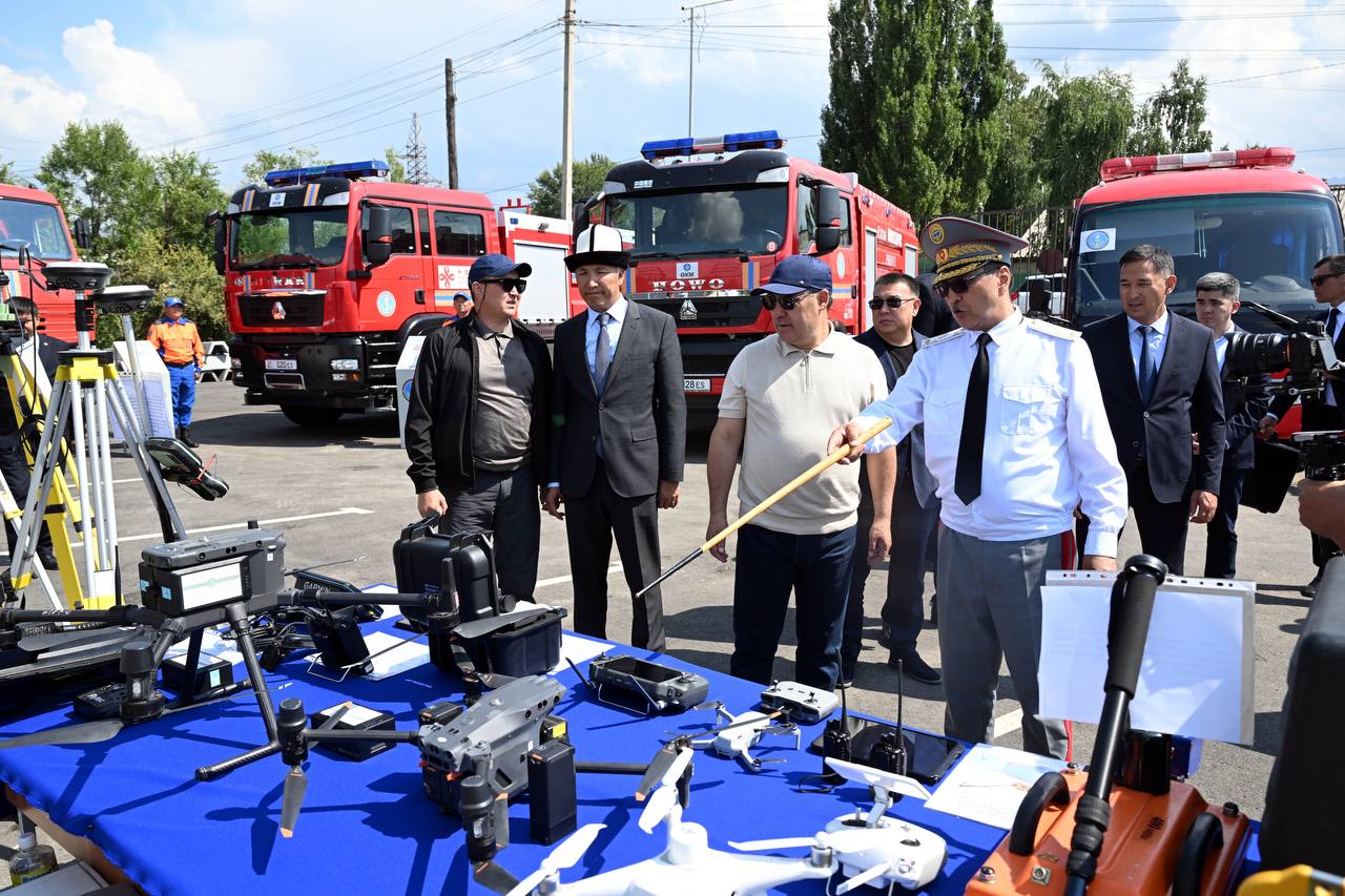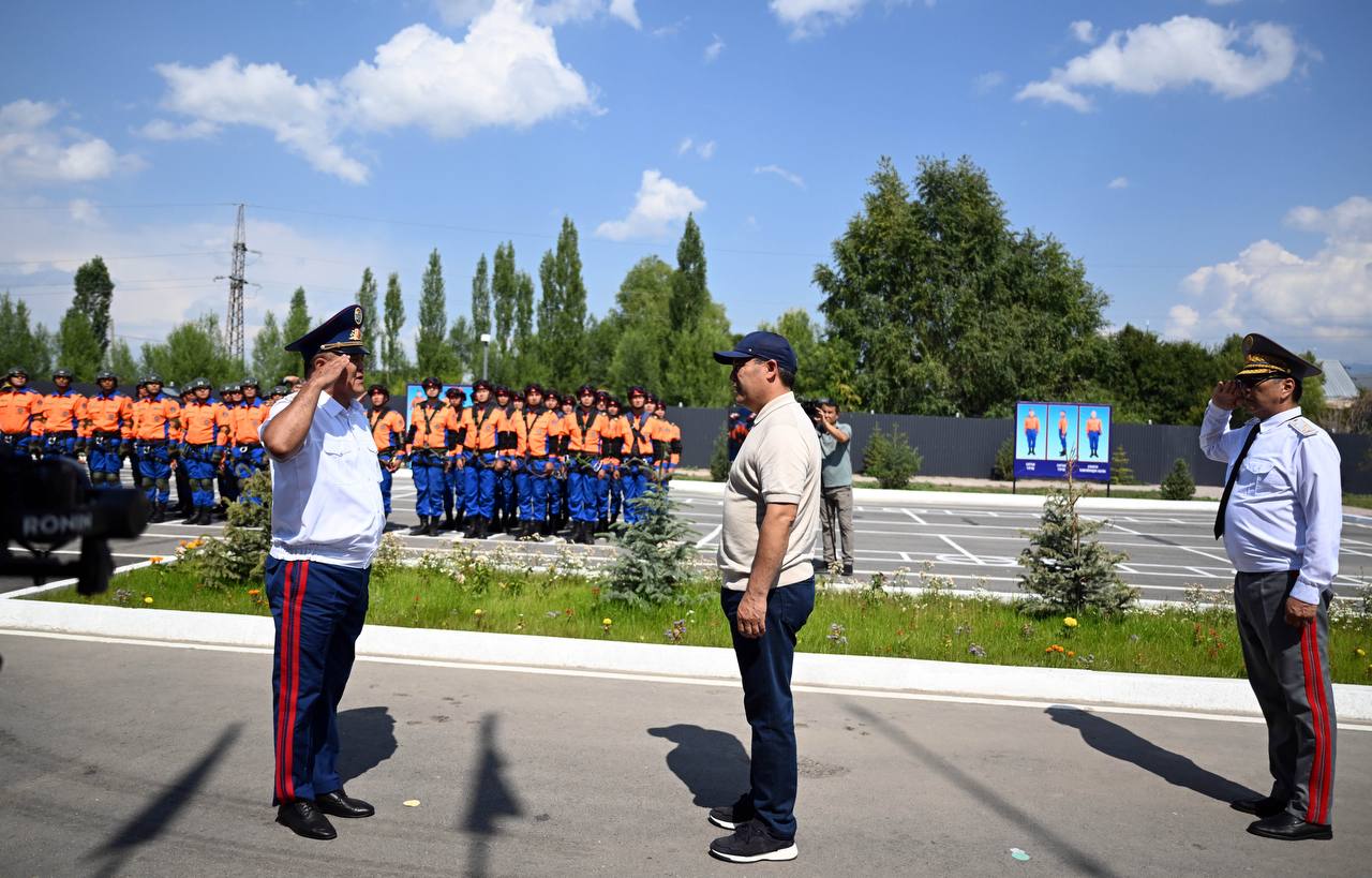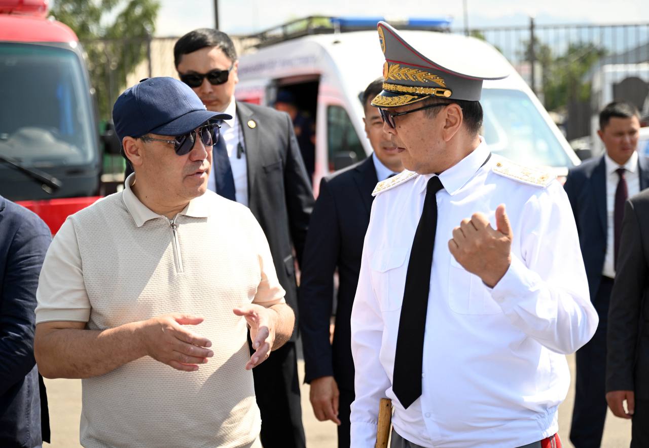 Глава государства осмотрел специальную технику МЧС и ознакомился с условиями труда сотрудников. Садыр Жапаров был проинформирован о функционировании системы раннего оповещения, а также об используемых механизмах мониторинга и реагирования при угрозе чрезвычайных ситуаций.