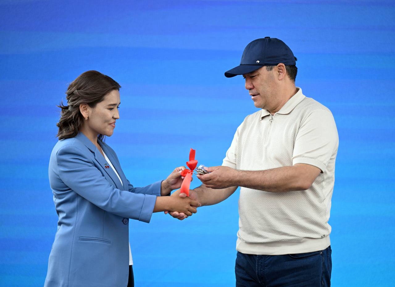 Садыр Жапаров вручил ключи от квартир в новом микрорайоне «Хан-Теңири», построенном Государственной ипотечной компанией в Караколе. Об этом сообщает пресс-служба президента.