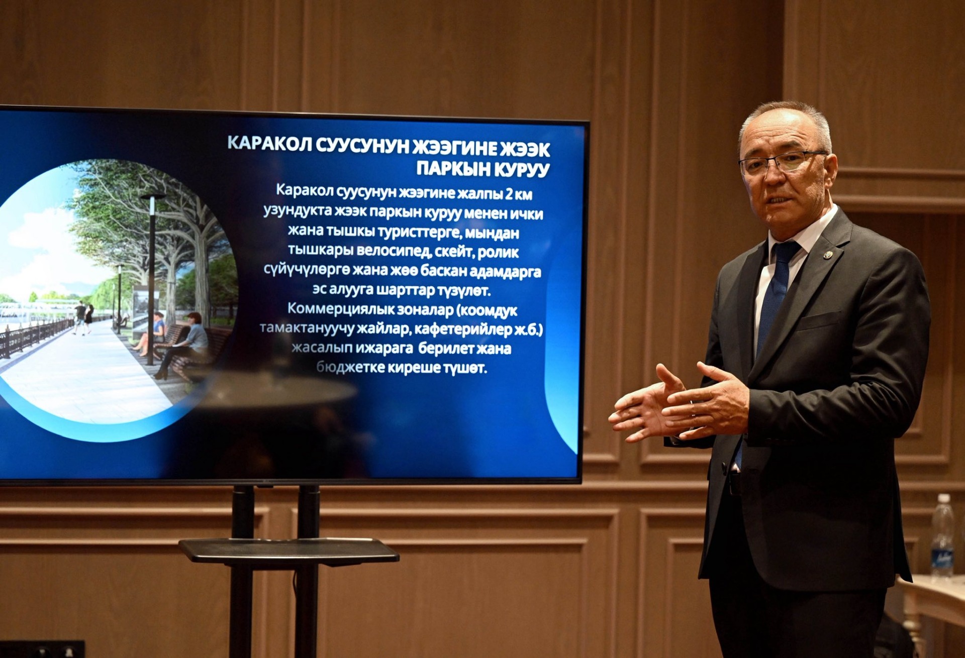 Мэр города Каныбек Адиев сообщил Садыру Жапарову, что вдоль реки Каракол планируется строительство набережного парка протяженностью 2 километра. Здесь создадут комфортные условия для пешеходов, велосипедистов и любителей активного отдыха.
