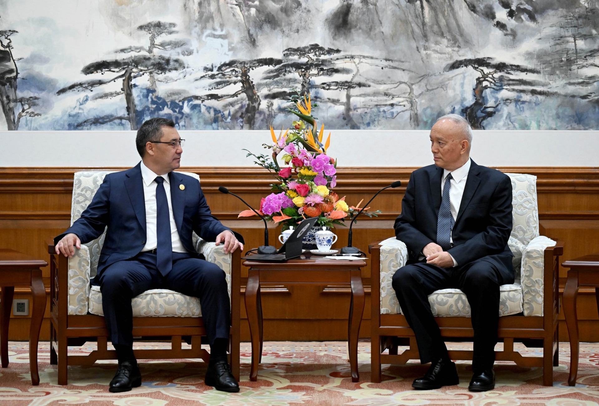 В рамках рабочего визита в Китай президент Садыр Жапаров провел встречу с членом Постоянного комитета Политбюро Центрального комитета Коммунистической партии КНР Цаем Ци. Об этом сообщает пресс-служба главы государства.