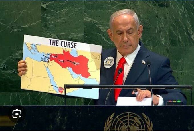 Во время речи премьер-министр Израиля продемонстрировал карту под названием «Проклятье», отметив на ней «врагов государства, уничтоженных за последний год». Также зачитал имена израильских заложников, которых до сих пор удерживает ХАМАС.