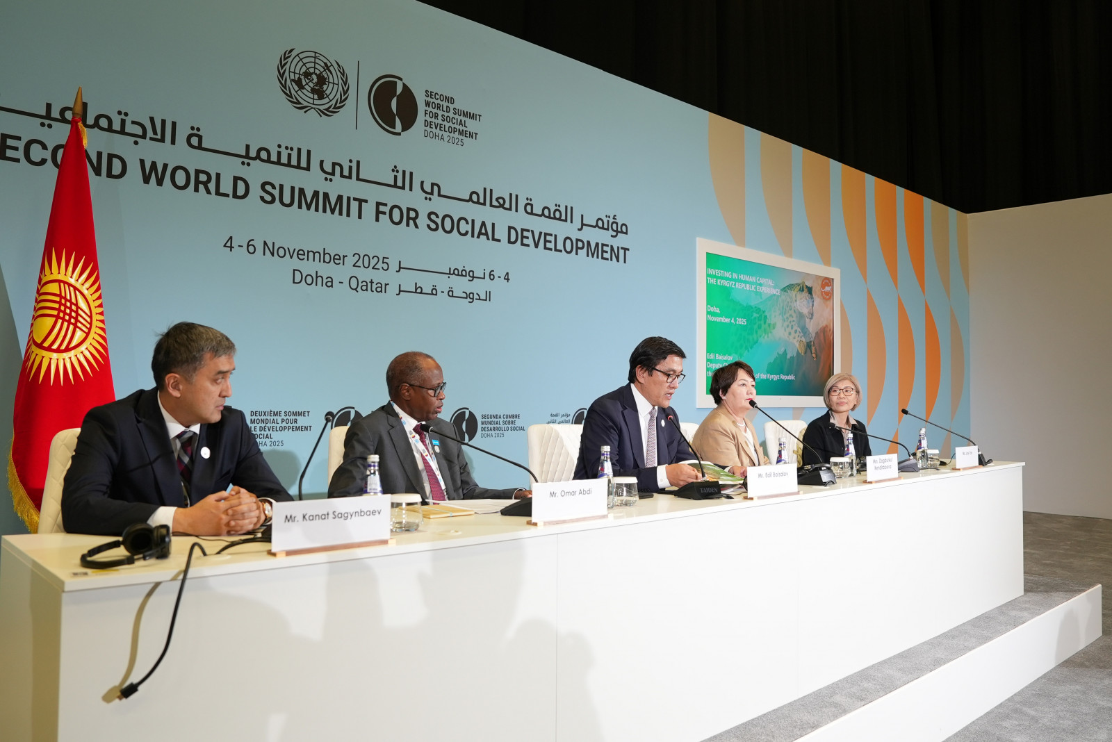На полях саммита КР организовала сайд-ивент на тему «Инвестиции в человеческий капитал: программы и успешные практики в Кыргызской Республике», где представлены основные направления реализуемых реформ в сфере образования, здравоохранения и социальной защиты и планы по дальнейшему развитию человеческого капитала.